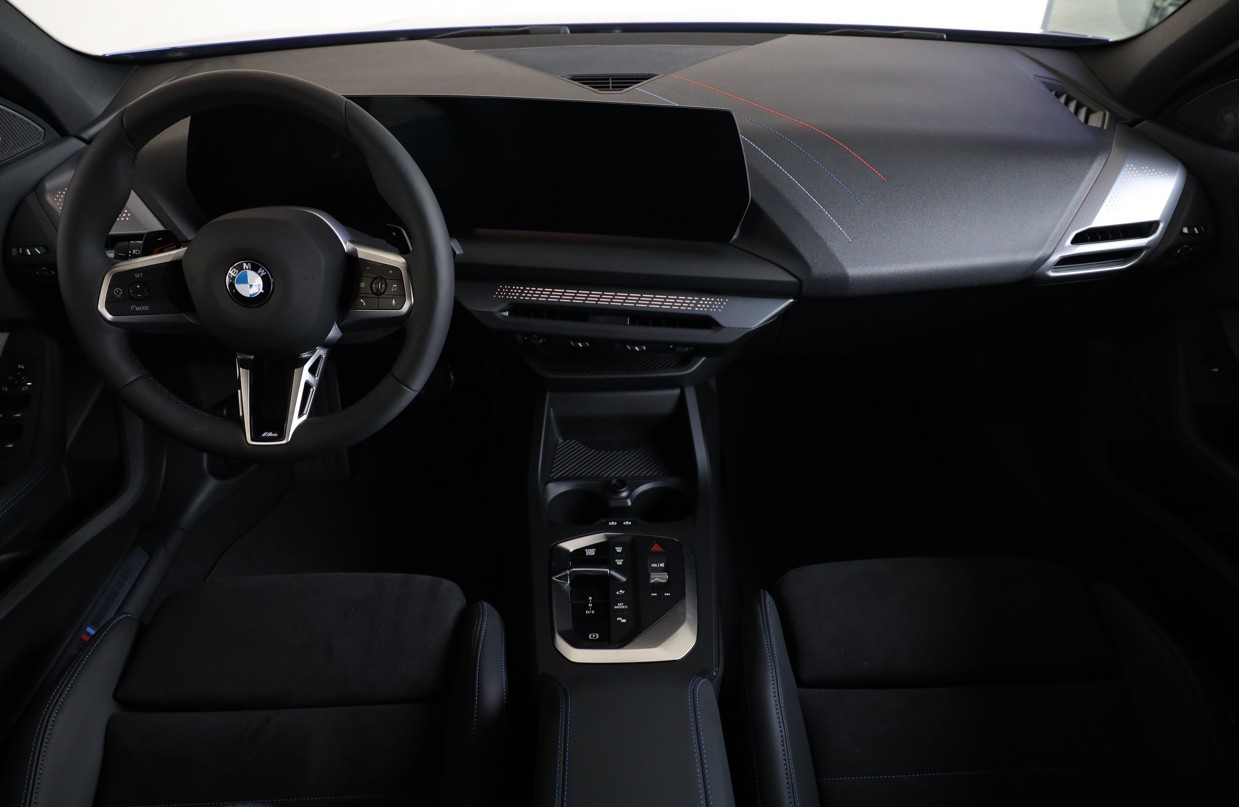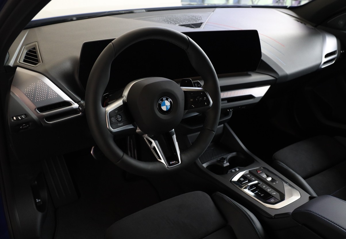 Můžete pohodlně ovládat řadu funkcí vozu pomocí multifunkčních tlačítek, aniž byste museli sundat ruce z volantu. M logo na věnci volantu naznačuje sportovní zaměření celého vozu.