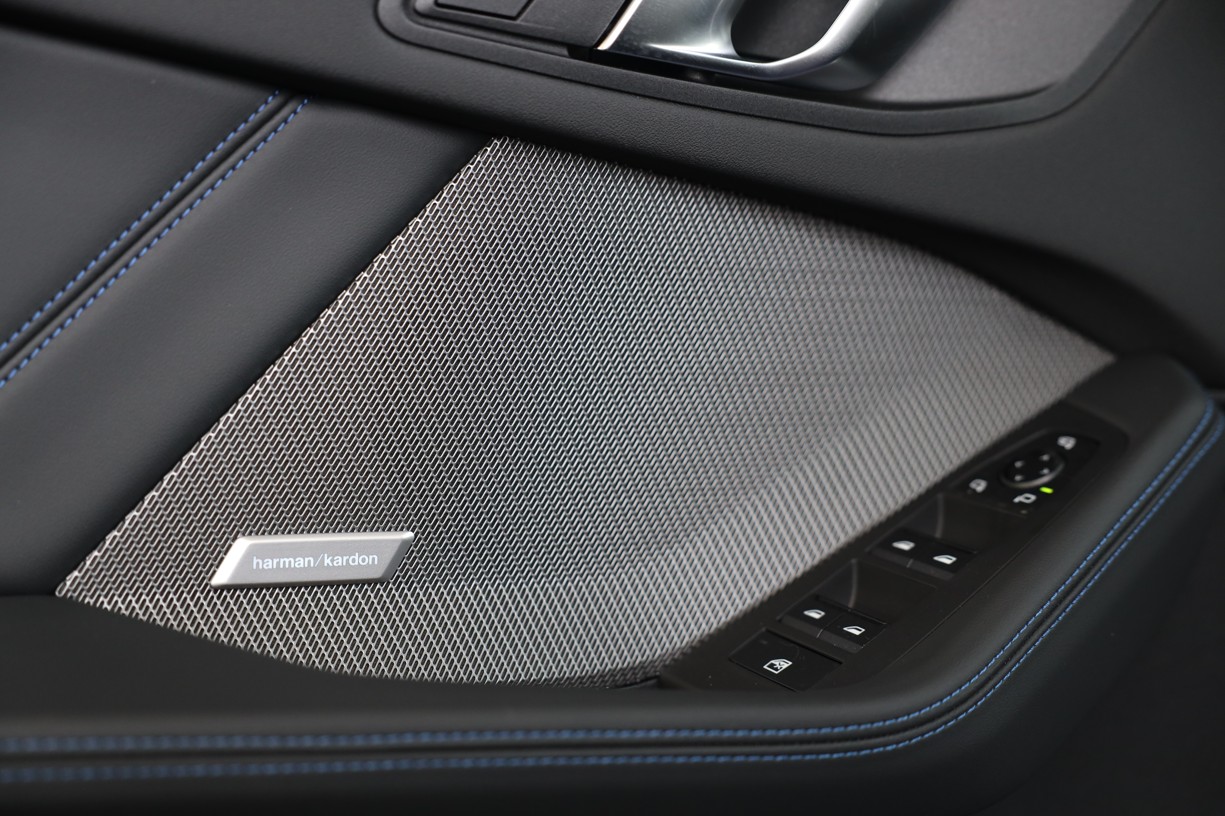 Oba centrální subwoofery jsou umístěny pod předními sedadly. Mřížky všech reproduktorů jsou vyrobeny z kovu. Nápis Harman/Kardon v hliníkovém provedení na výškových reproduktorech v základnách zrcátek přispívá k elegantnímu vzhledu interiéru a je příslibem výjimečné kvality zvukového podání.