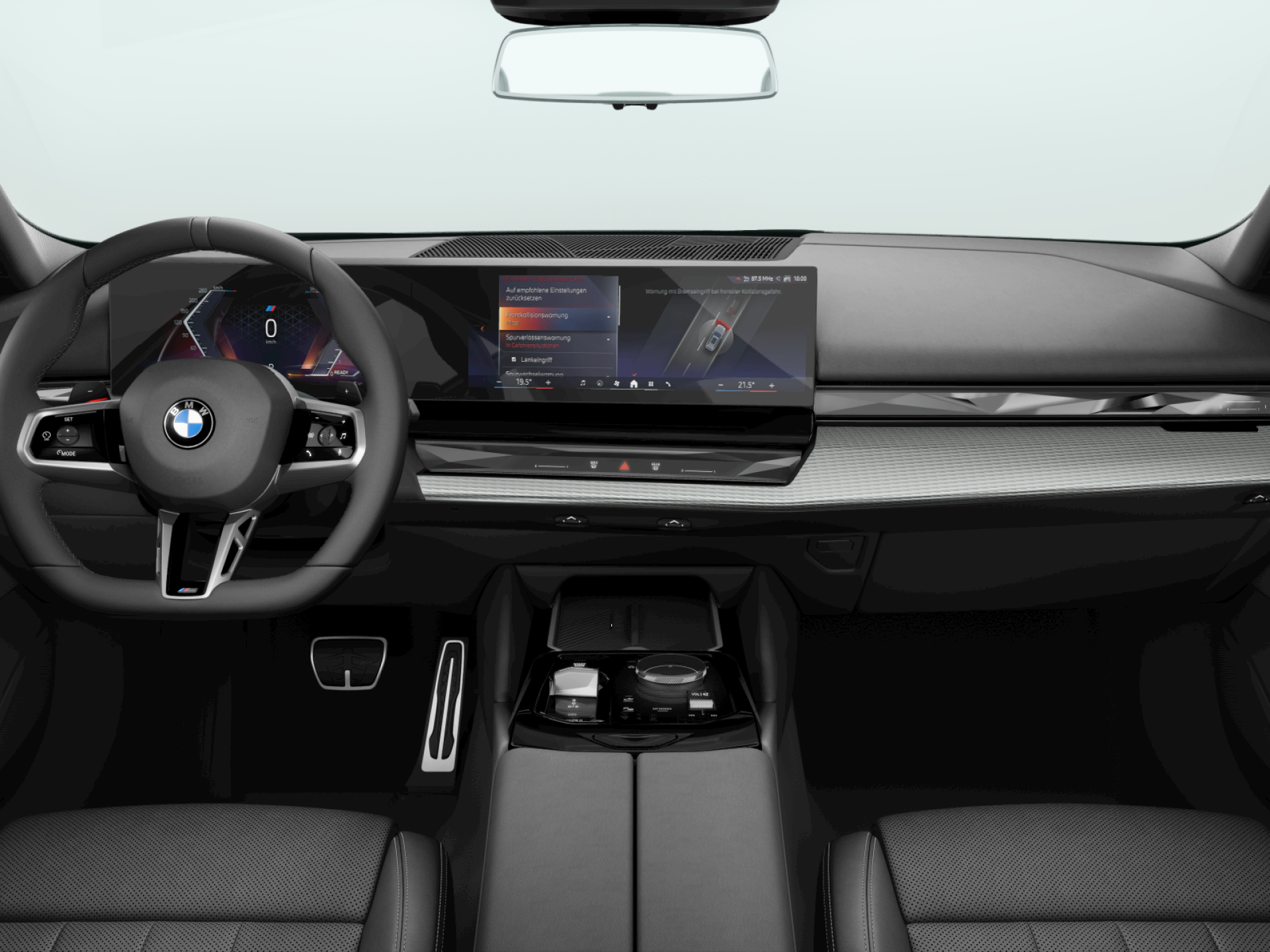 Tříramenný M kožený volant s multifunkčními tlačítky a integrovaným airbagem řidiče. Díky věnci volantu čalouněnému černou kůží Walknappa s černým prošíváním a vybráním na palce je příjemný na dotek a poskytuje bezprostřední zážitek ze sportovní jízdy.