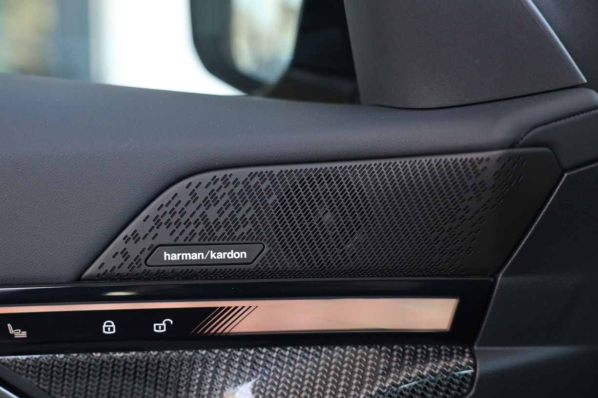 Oba centrální subwoofery jsou umístěny pod předními sedadly. Mřížky všech reproduktorů jsou vyrobeny z kovu. Nápis Harman/Kardon v hliníkovém provedení na výškových reproduktorech v základnách zrcátek přispívá k elegantnímu vzhledu interiéru a je příslibem výjimečné kvality zvukového podání.