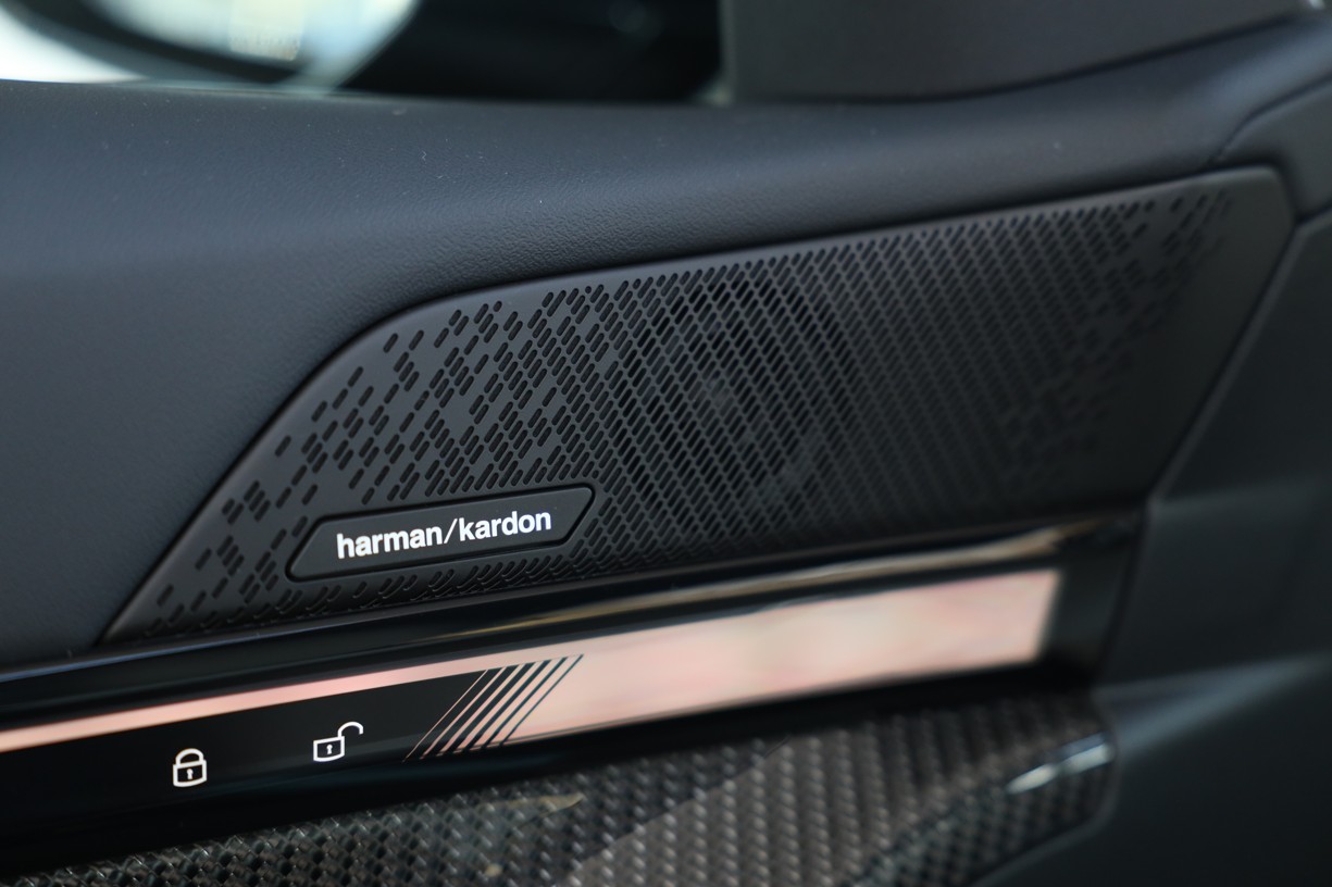 Oba centrální subwoofery jsou umístěny pod předními sedadly. Mřížky všech reproduktorů jsou vyrobeny z kovu. Nápis Harman/Kardon v hliníkovém provedení na výškových reproduktorech v základnách zrcátek přispívá k elegantnímu vzhledu interiéru a je příslibem výjimečné kvality zvukového podání.