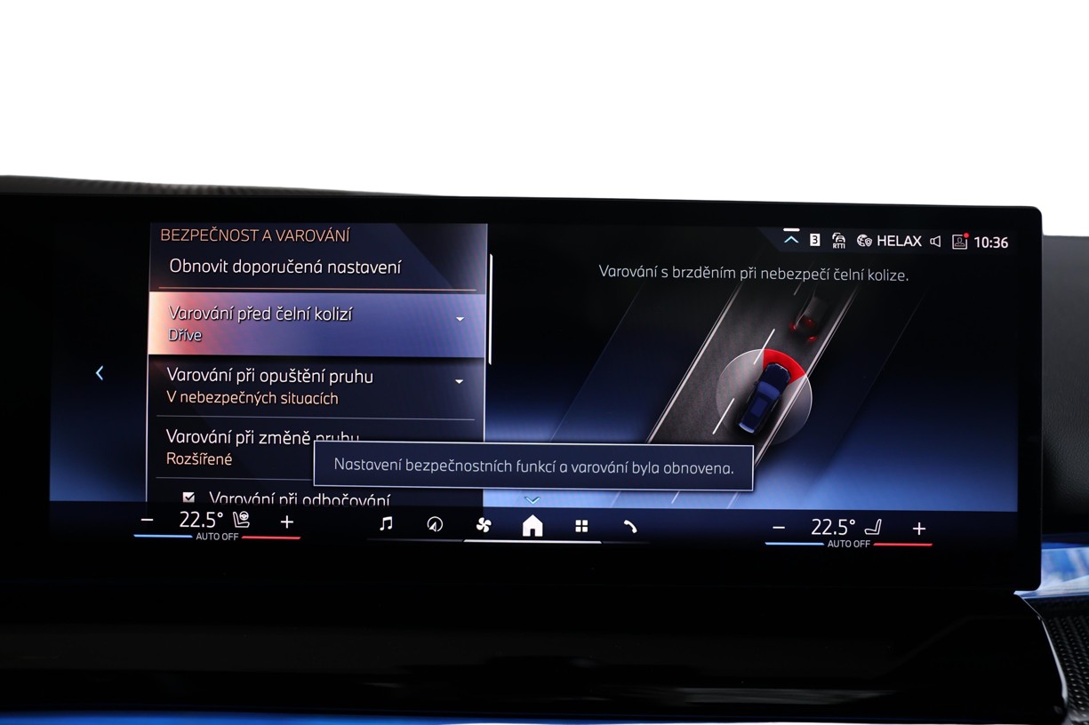 I když jsou venkovní teploty nízké, může i tak řidič svou jízdu zahájit v příjemně předehřátém voze. Teplotu interiéru lze totiž nastavit bez ohledu na to, zda je motor v chodu, a to pomocí nezávislého topení, které obsahuje i funkci praktického časovače. Díky němu se také nezamlžují a nezamrznou okna. Nezávislé topení se aktivuje a obsluhuje samostatným BMW klíčem s displejem, aplikací My BMW Remote nebo ovladačem iDrive.