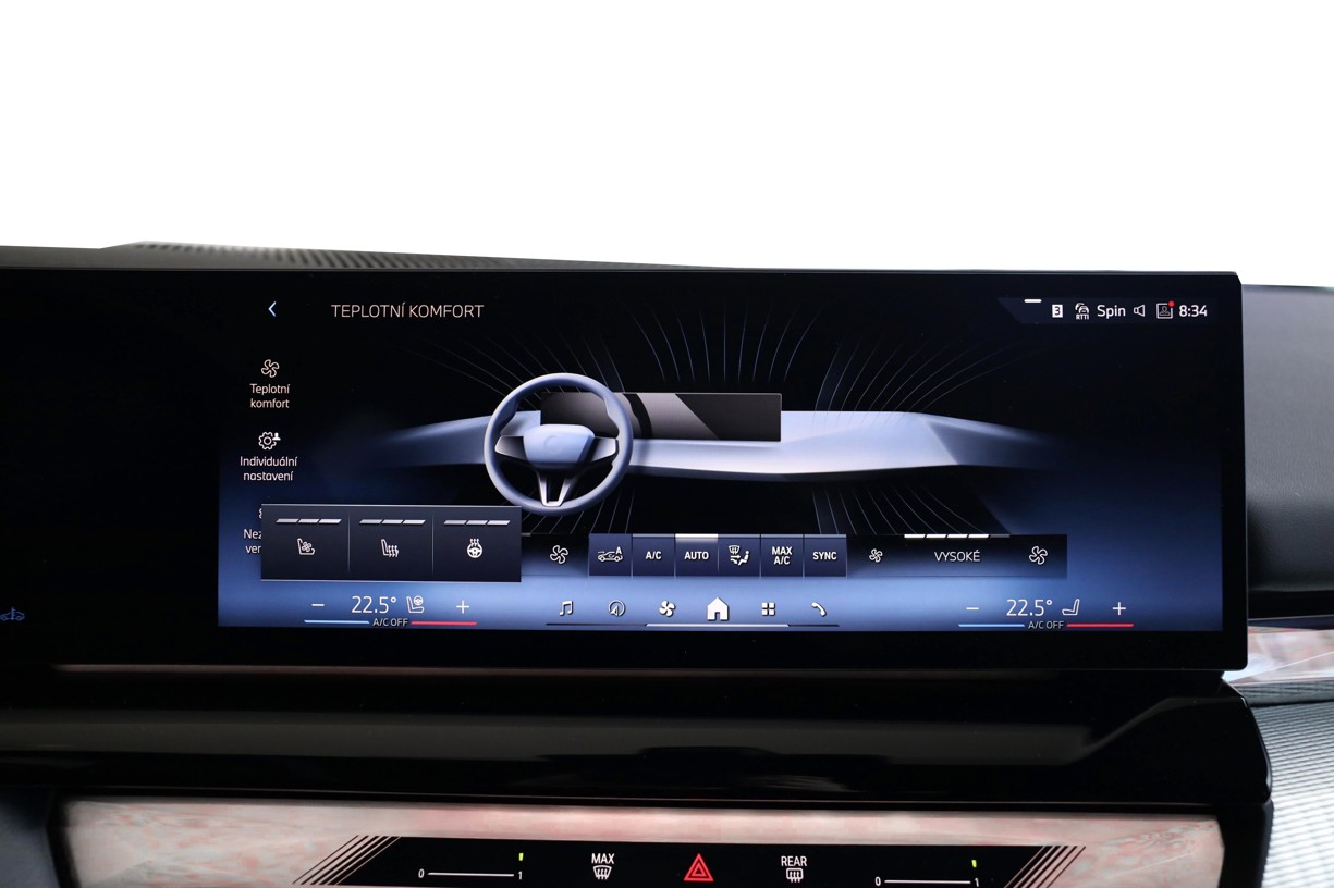 Individuální komfortní prostředí pro každé sedadlo: Automatická 4zónová klimatizace samočinně udržuje teplotu, její rozvrstvení, stejně jako regulaci intenzity ventilace v pěti krocích odděleně pro řidiče, spolujezdce vpředu a pro cestující na levém i pravém zadním sedadle. Vše se nastavuje prostřednictvím dotykových displejů. Klimatizaci pro přední sedadla lze obsluhovat prostřednictvím dotykového displeje. Díky automatické regulaci objemu vzduchu je možné rychle dosáhnout požadované teploty a zvolené nastavení udržet na konstantní úrovni.
