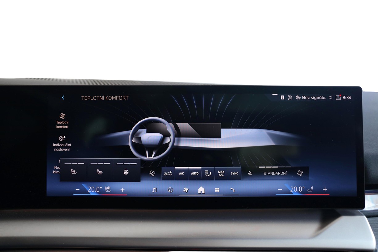 Individuální komfortní prostředí pro každé sedadlo: Automatická 4zónová klimatizace samočinně udržuje teplotu, její rozvrstvení, stejně jako regulaci intenzity ventilace v pěti krocích odděleně pro řidiče, spolujezdce vpředu a pro cestující na levém i pravém zadním sedadle. Vše se nastavuje prostřednictvím dotykových displejů. Klimatizaci pro přední sedadla lze obsluhovat prostřednictvím dotykového displeje. Díky automatické regulaci objemu vzduchu je možné rychle dosáhnout požadované teploty a zvolené nastavení udržet na konstantní úrovni.