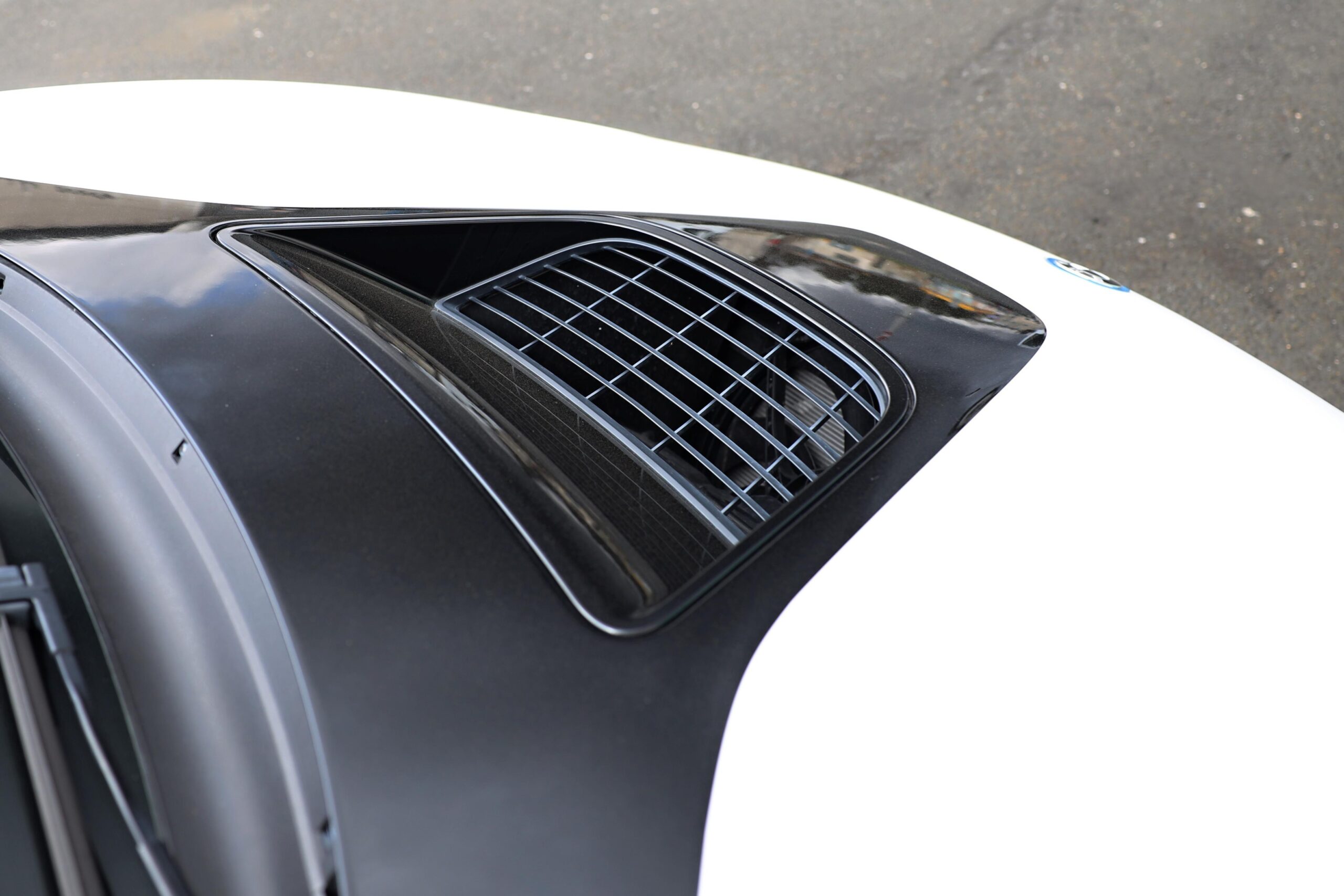 Kryt motoru je vyroben z černé matné kůže Walknappa a je viditelný skrz zadní okno.