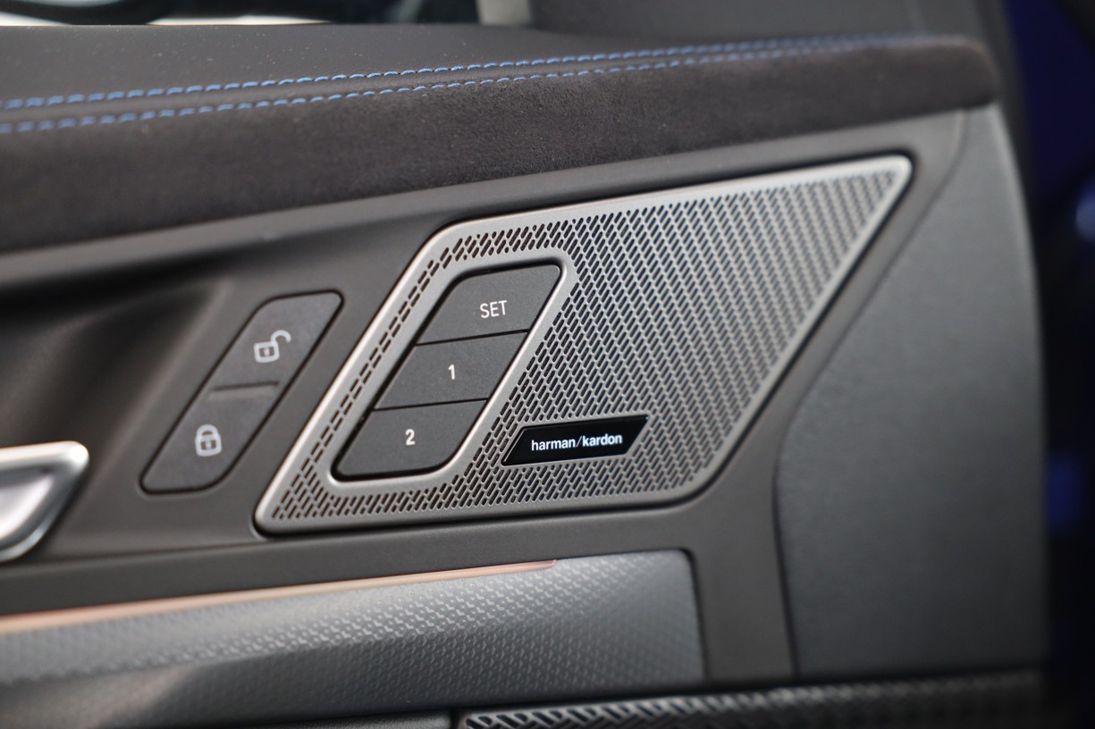Oba centrální subwoofery jsou umístěny pod předními sedadly. Mřížky všech reproduktorů jsou vyrobeny z kovu. Nápis Harman/Kardon v hliníkovém provedení na výškových reproduktorech v základnách zrcátek přispívá k elegantnímu vzhledu interiéru a je příslibem výjimečné kvality zvukového podání.