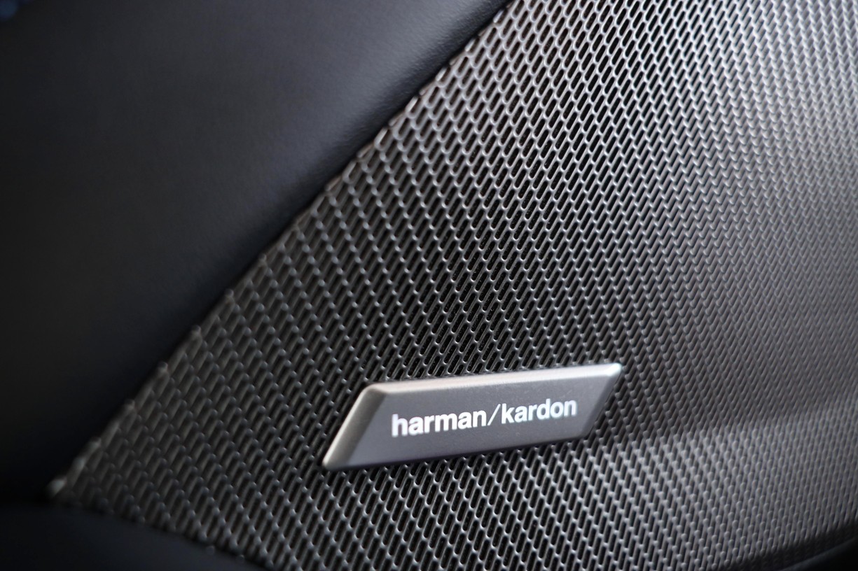 HiFi audiosystém Harman Kardon pracuje s externím zesilovačem v zavazadlovém prostoru s výkonem. Propracované akustické vlastnosti systému vyplňují prostor působivým zvukem. Systém využívá celkem 12 reproduktorů: Dva středopásmové reproduktory jsou umístěny v panelech předních dveří a v zadním platu a jeden středopásmový reproduktor je také v přístrojové desce, dva výškové reproduktory jsou v základnách zpětných zrcátek, dva v zadním platu a jeden v přístrojové desce.