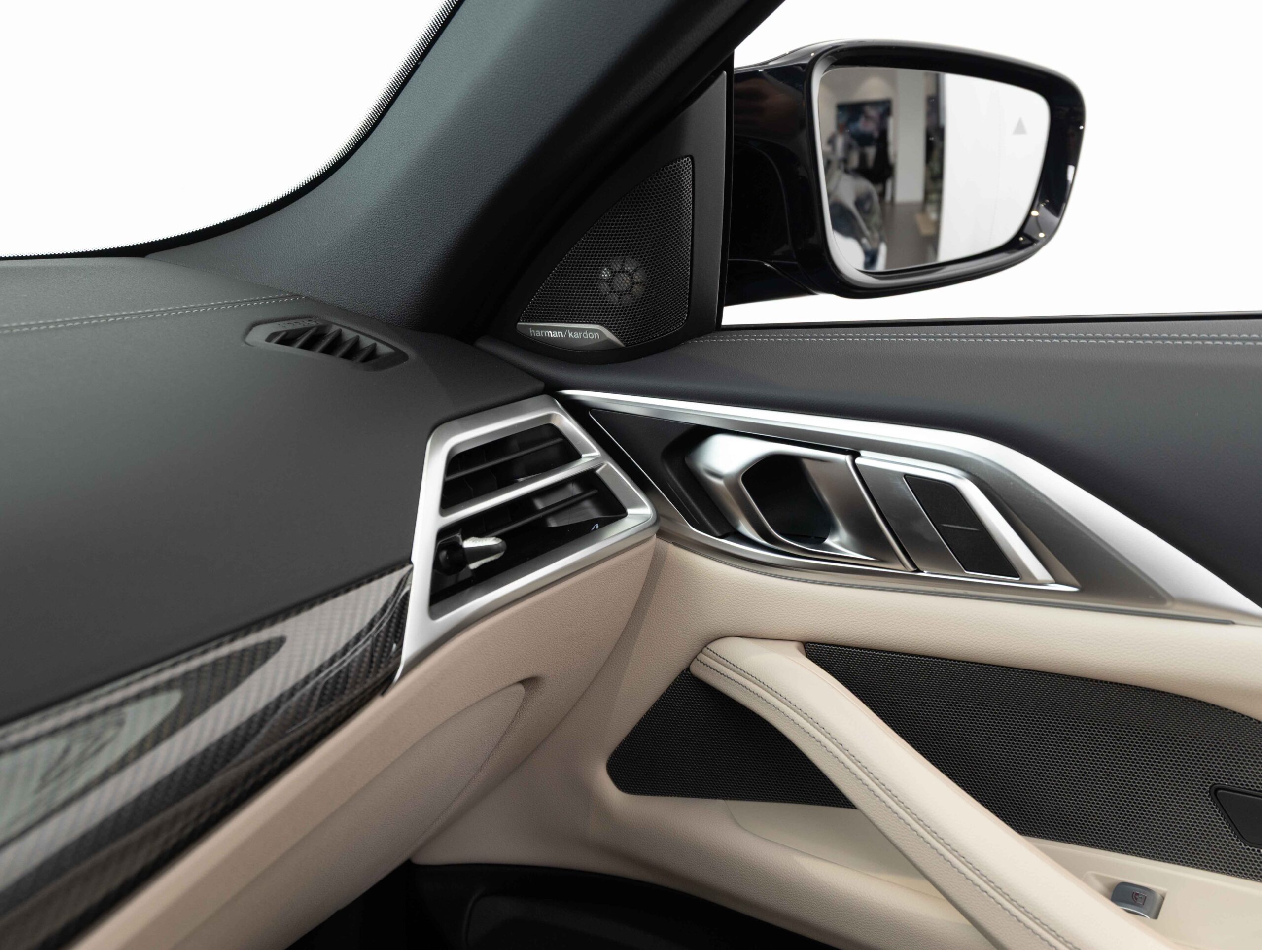 Reproduktory prémiové kvality s šestiúhelníkovými perforovanými kryty v provedení Titanium Dark doplňují vysokopásmové reproduktory v předních dveřích s nápisy Harman Kardon. Zvuk lze přizpůsobit prostřednictvím osvědčeného ergonomického ovladače iDrive a kontrolního displeje.