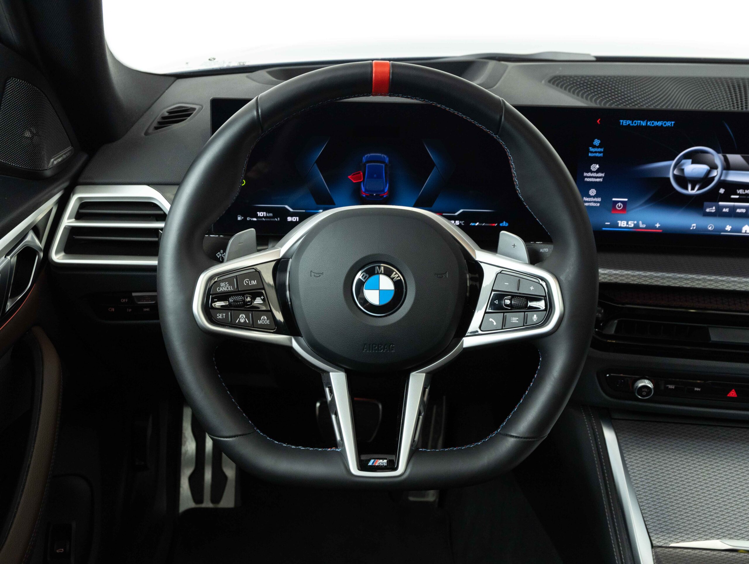 Reproduktory prémiové kvality s šestiúhelníkovými perforovanými kryty v provedení Titanium Dark doplňují vysokopásmové reproduktory v předních dveřích s nápisy Harman Kardon. Zvuk lze přizpůsobit prostřednictvím osvědčeného ergonomického ovladače iDrive a kontrolního displeje.