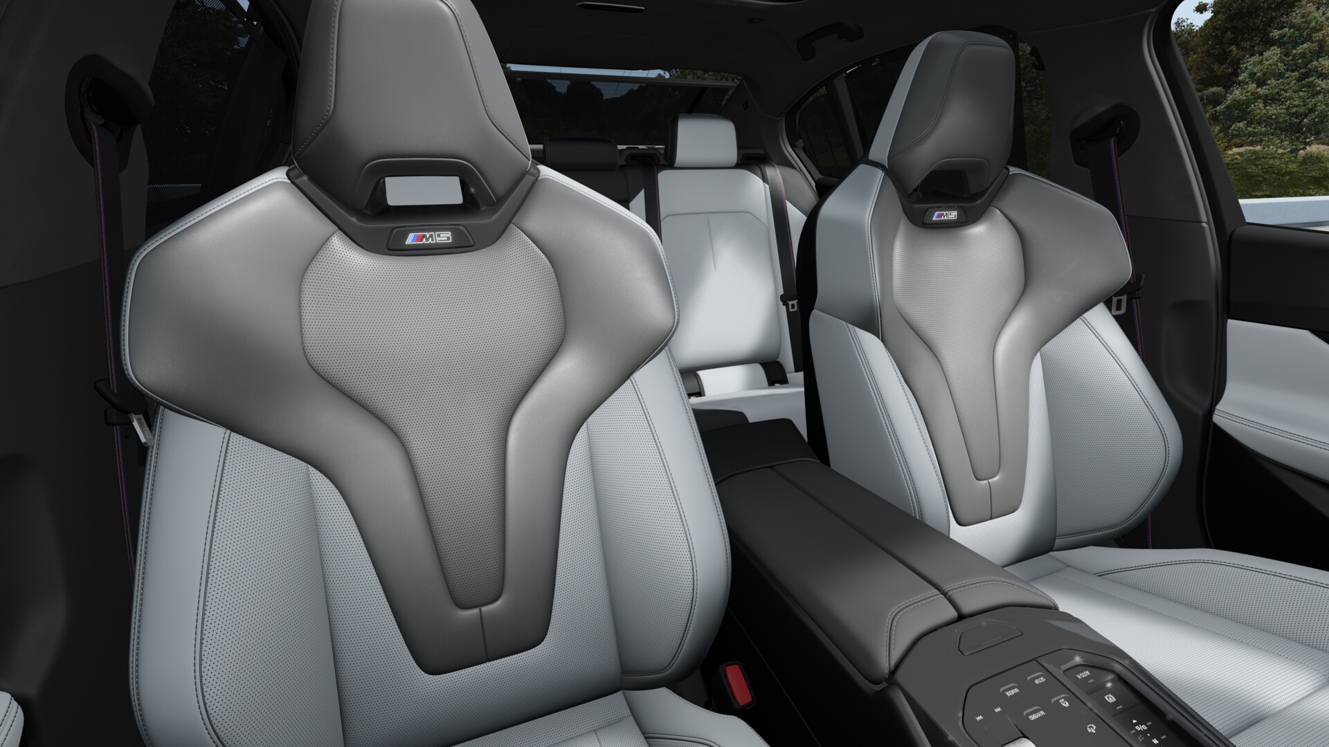 Exkluzivní multifunkční M sedadla odrážejí dynamiku exteriéru vozidla v jeho interiéru. Řidič a spolujezdec se mohou pohodlně opřít do celokožených sedadel s osvětleným logem M5 na opěrce hlavy.I během velmi dynamické jízdy hluboká sedadla s dokonalým bočním vedením a ergonomicky tvarovanou ramenní části zaručí optimální boční oporu za všech okolností.