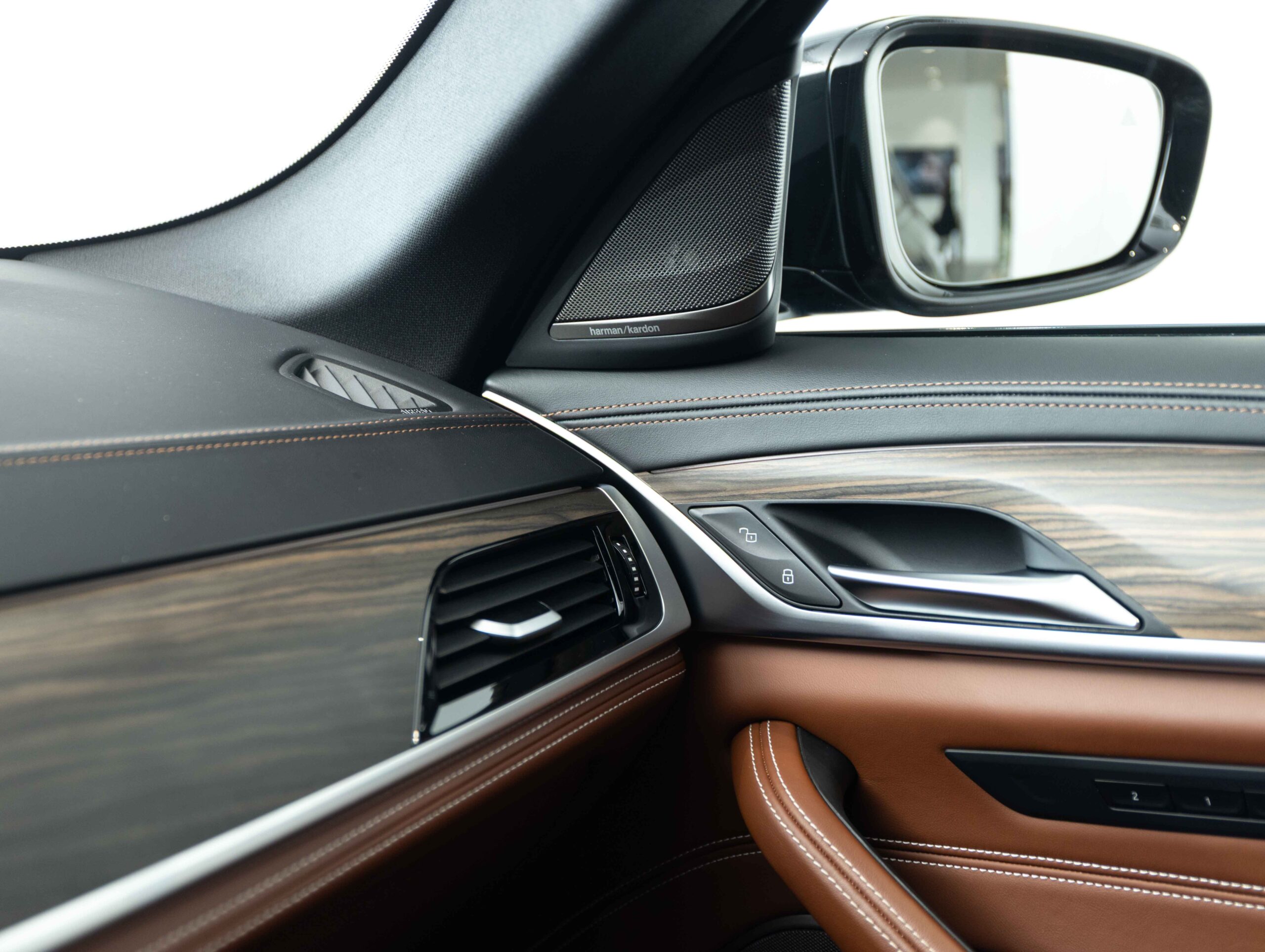 Reproduktory prémiové kvality s šestiúhelníkovými perforovanými kryty v provedení Titanium Dark doplňují vysokopásmové reproduktory v předních dveřích s nápisy Harman Kardon. Zvuk lze přizpůsobit prostřednictvím osvědčeného ergonomického ovladače iDrive a kontrolního displeje.