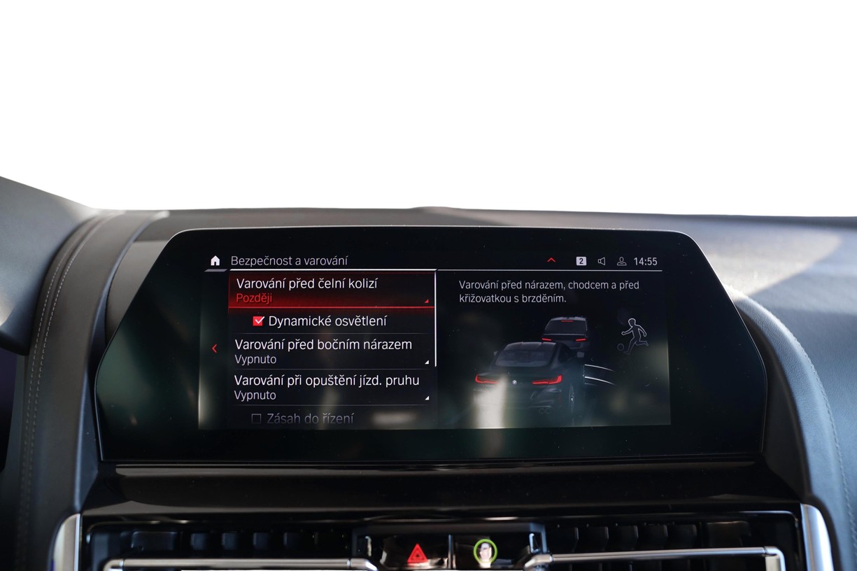 V případě akutního nebezpečí se na multifunkčním palubním ukazateli a na BMW Head-Up Displeji zobrazí blikající červený symbol (zvířete nebo osoby). Zazní zvukový signál a zvýší se tlak v brzdové soustavě, aby byla připravena a zkrátila se tak reakční doba.Tento výstražný systém se automaticky aktivuje po nastartování. Proto v případě nebezpečí systém vyšle varování i přesto, že obraz kamery není zapnutý. Systém BMW Night Vision s rozpoznáváním osob je inovací od BMW ConnectedDrive.