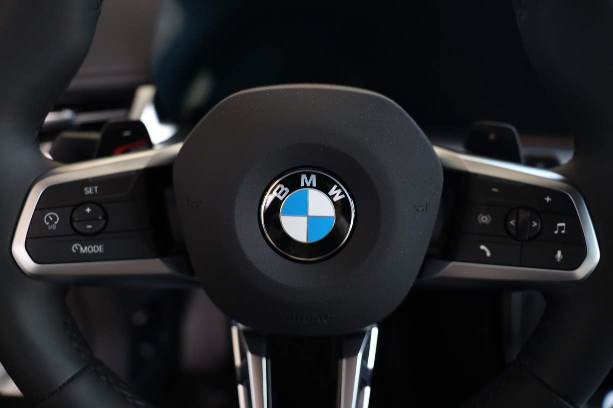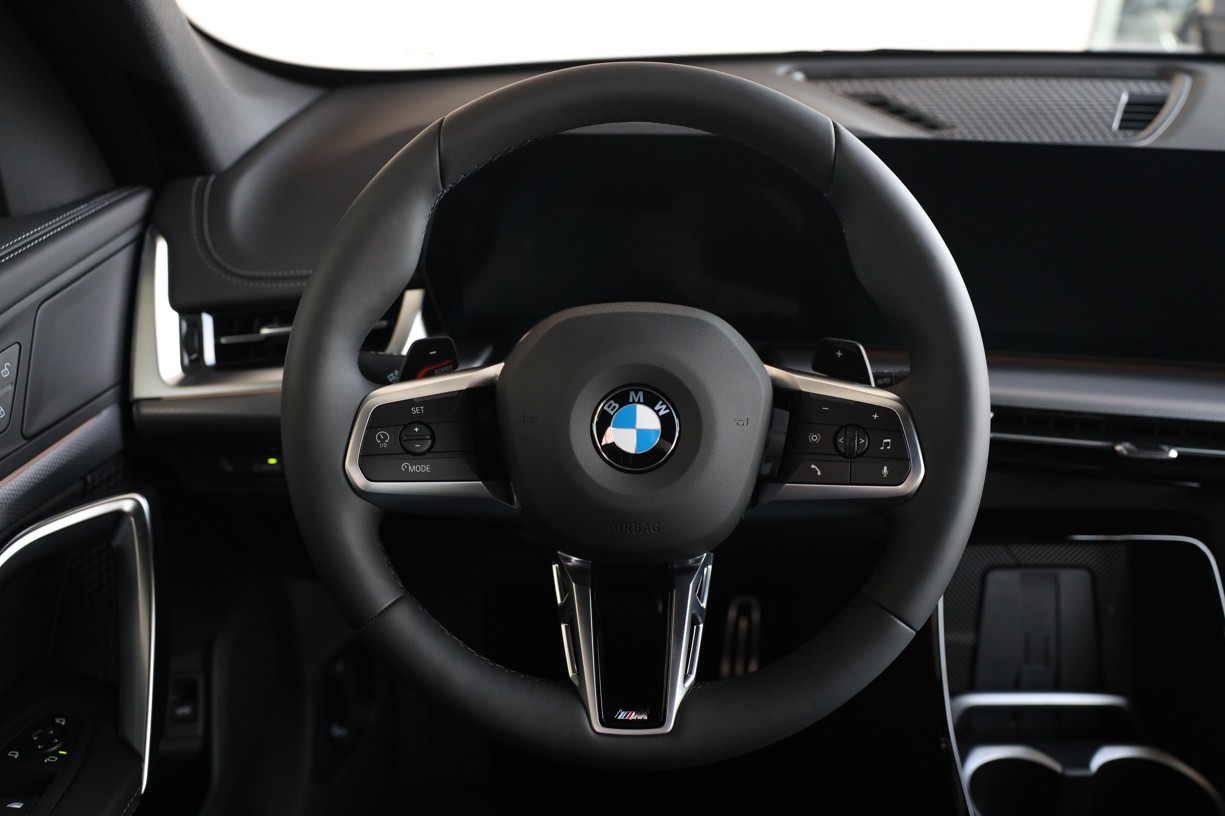 Tříramenný M kožený volant s multifunkčními tlačítky a integrovaným airbagem řidiče. Díky věnci volantu čalouněnému černou kůží Walknappa s černým prošíváním a vybráním na palce je příjemný na dotek a poskytuje bezprostřední zážitek ze sportovní jízdy.