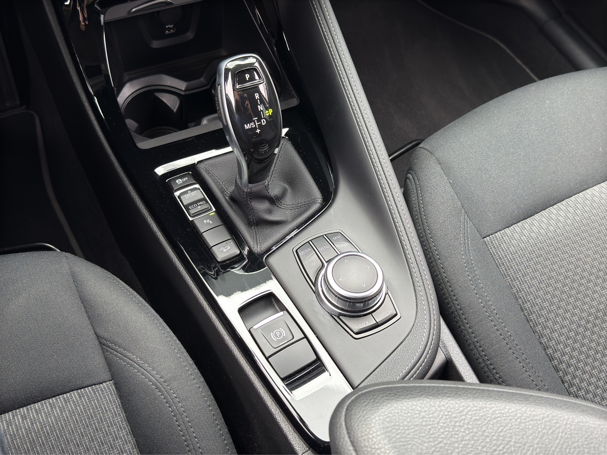 Přední loketní opěrka je nastavitelná do pěti různých poloh. Pod opěrkou je k dispozici objemný odkládací prostor. Odkládací prostor je doplněn protiskluzovou podložkou, která zároveň pohlcuje nežádoucí zvuky. Nastavení úhlu opěrky zajišťuje, že volič převodovky i ovladače parkovací brzdy a systému iDrive jsou vždy pohodlně v dosahu.