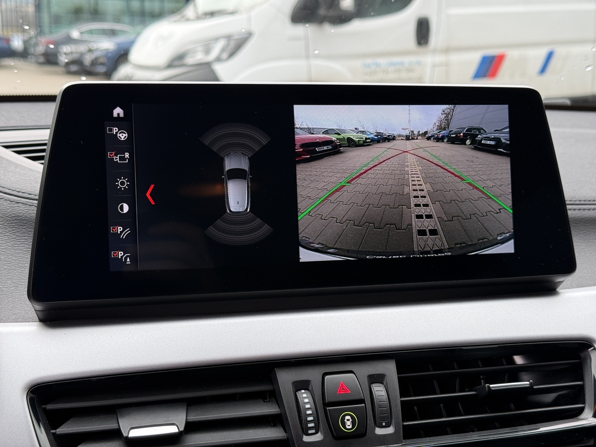 Zadní kamera umožňuje lepší orientaci při couvání v parkovacích situacích a v rozsahu rychlostí nižším než 20 km/h. Zobrazuje oblast za vozidlem v ovládacím displeji. Interaktivní traťové linie pro vzdálenost a kruh otáčení podporují řidiče při manévrování, překážky jsou označeny barevně.