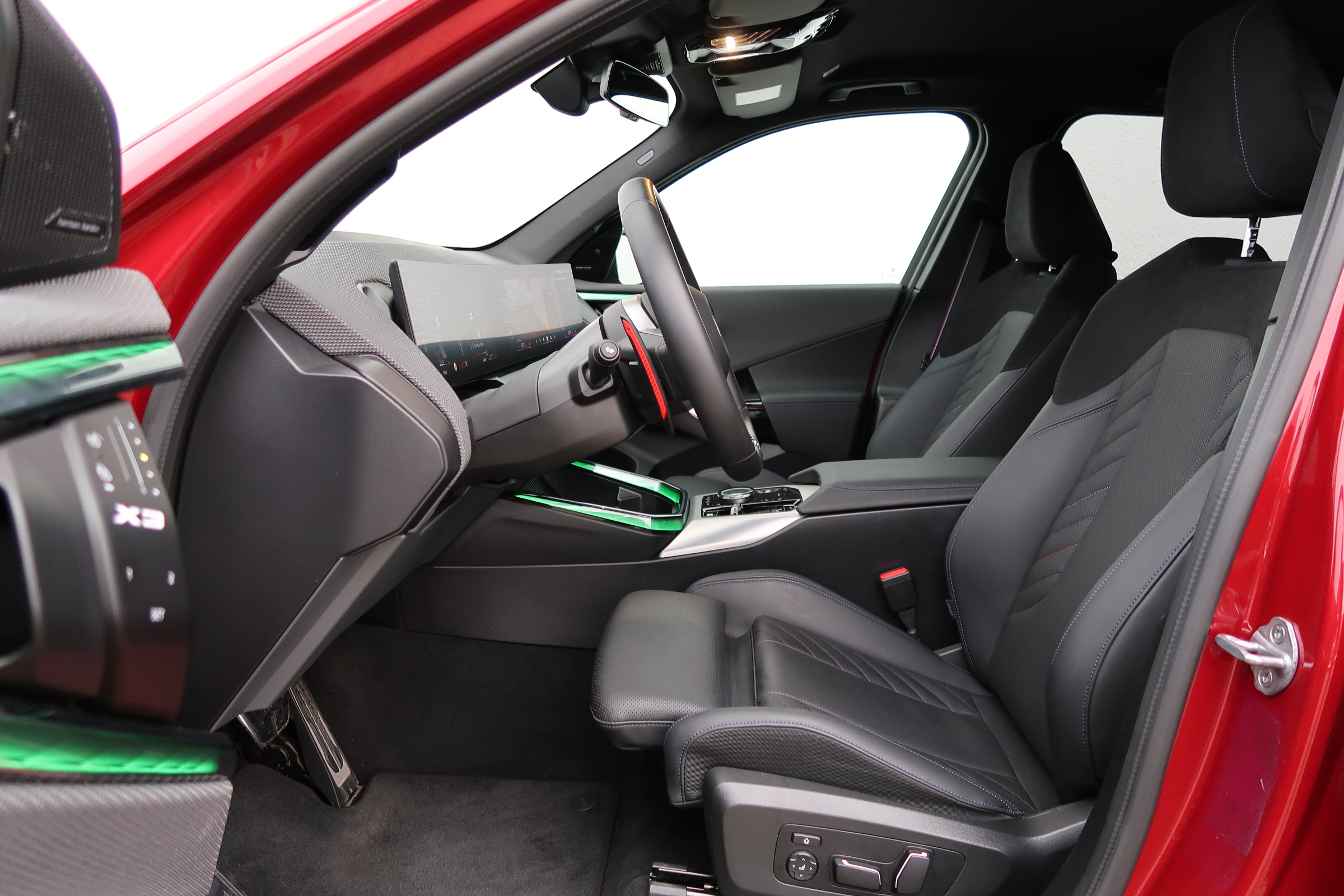 Tříramenný M kožený volant s multifunkčními tlačítky a integrovaným airbagem řidiče. Díky věnci volantu čalouněnému černou kůží Walknappa s černým prošíváním a vybráním na palce je příjemný na dotek a poskytuje bezprostřední zážitek ze sportovní jízdy.