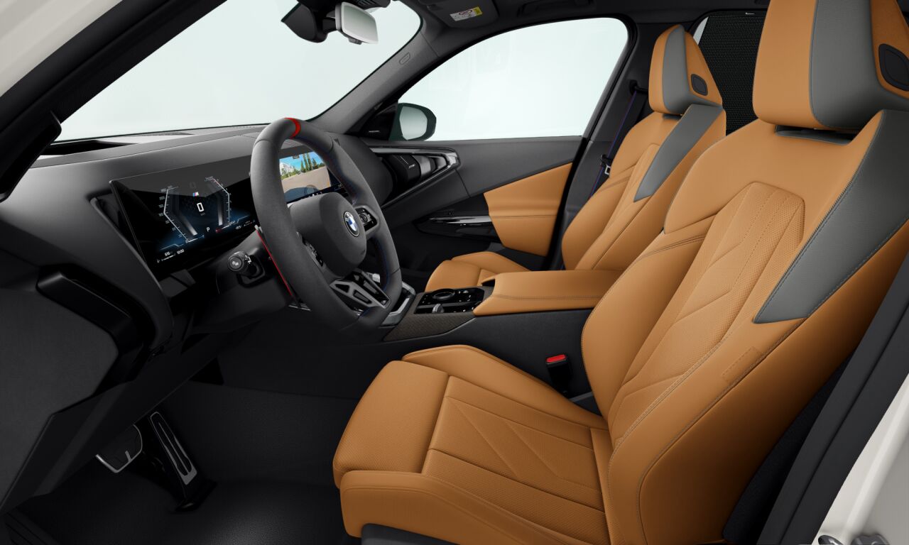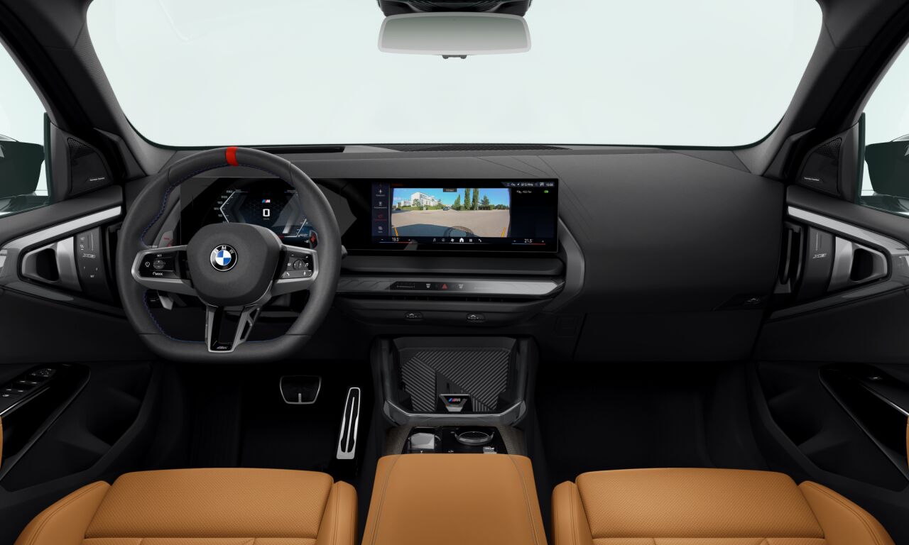 Tříramenný M kožený volant s multifunkčními tlačítky a integrovaným airbagem řidiče. Díky věnci volantu čalouněnému černou kůží Walknappa s černým prošíváním a vybráním na palce je příjemný na dotek a poskytuje bezprostřední zážitek ze sportovní jízdy.