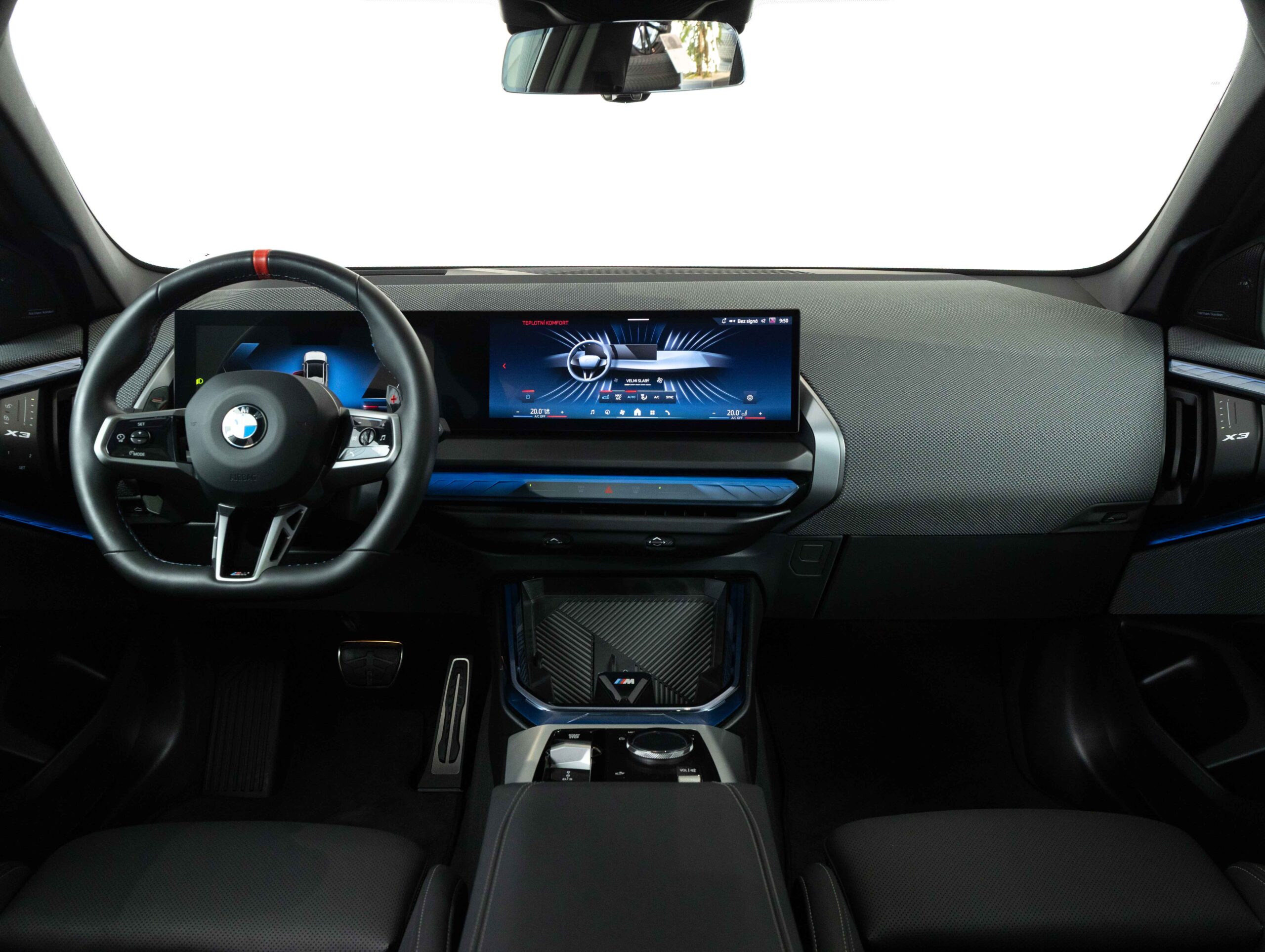 Tříramenný M kožený volant s multifunkčními tlačítky a integrovaným airbagem řidiče. Díky věnci volantu čalouněnému černou kůží Walknappa s černým prošíváním a vybráním na palce je příjemný na dotek a poskytuje bezprostřední zážitek ze sportovní jízdy.