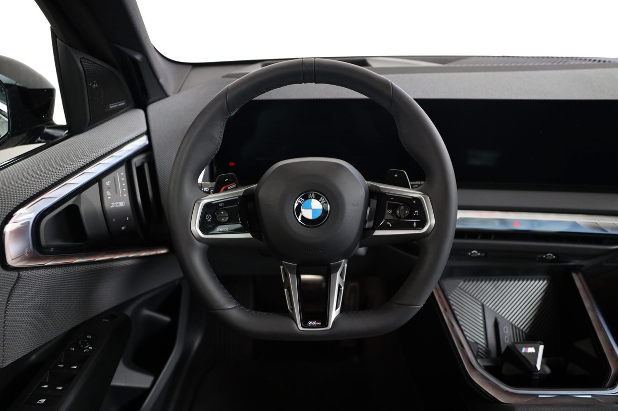 Tříramenný M kožený volant s multifunkčními tlačítky a integrovaným airbagem řidiče. Díky věnci volantu čalouněnému černou kůží Walknappa s černým prošíváním a vybráním na palce je příjemný na dotek a poskytuje bezprostřední zážitek ze sportovní jízdy.