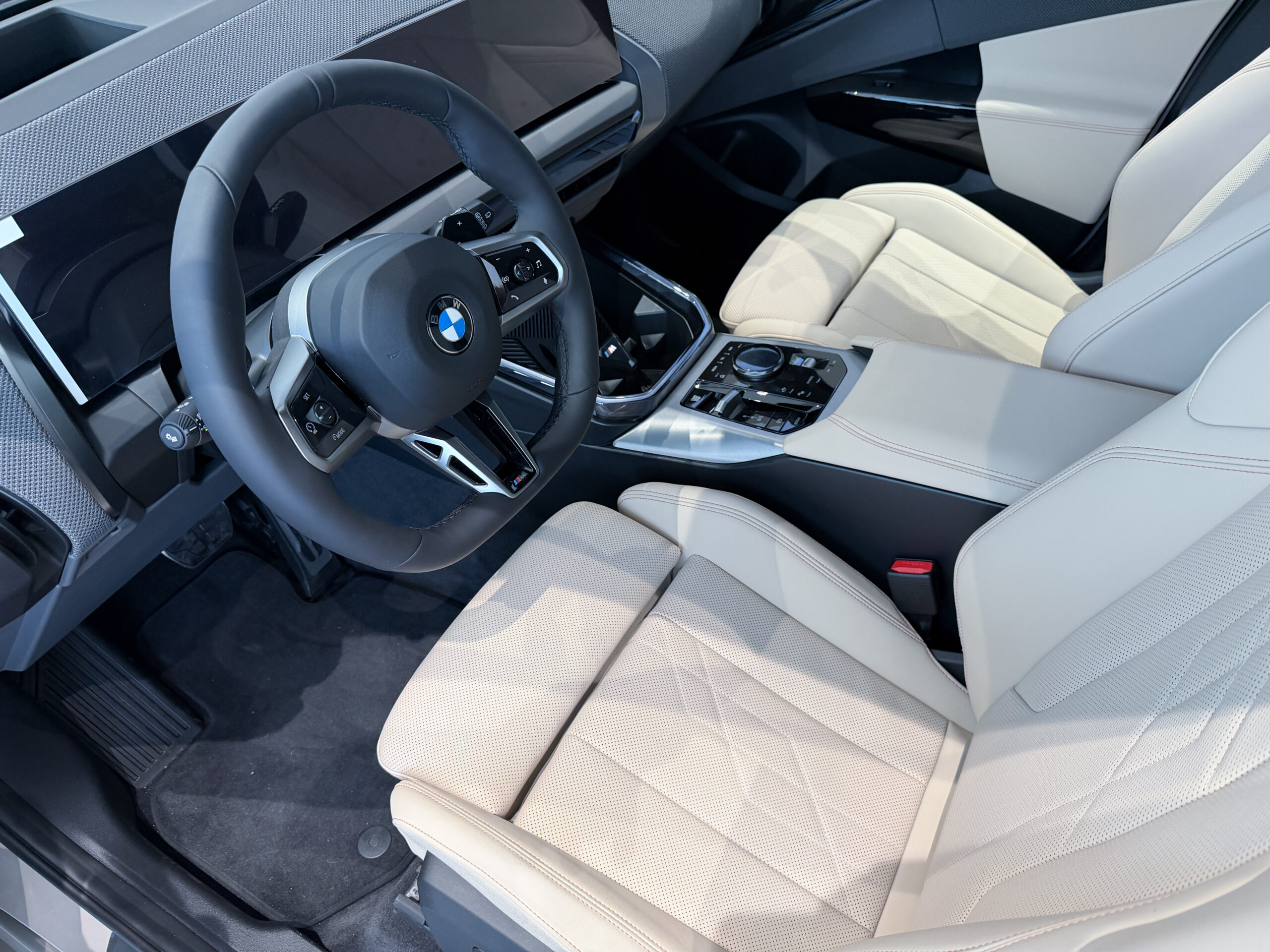 Tříramenný M kožený volant s multifunkčními tlačítky a integrovaným airbagem řidiče. Díky věnci volantu čalouněnému černou kůží Walknappa s černým prošíváním a vybráním na palce je příjemný na dotek a poskytuje bezprostřední zážitek ze sportovní jízdy.