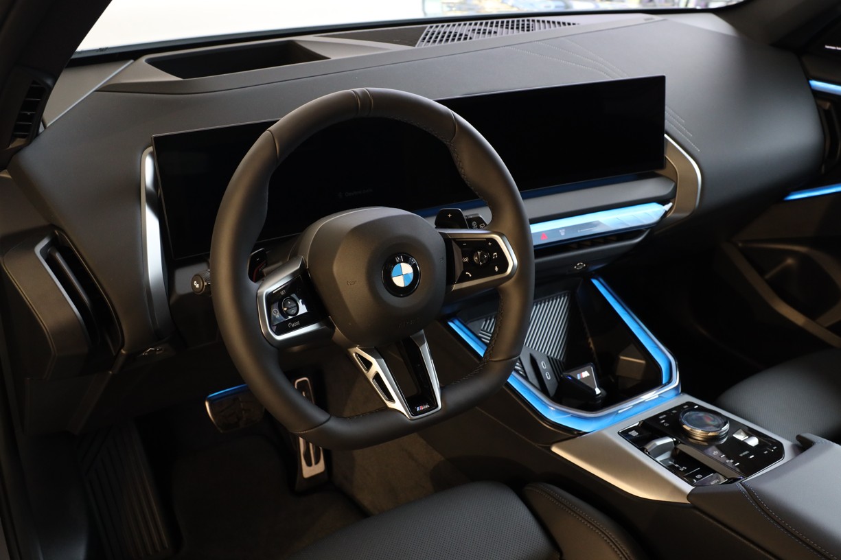 Tříramenný M kožený volant s multifunkčními tlačítky a integrovaným airbagem řidiče. Díky věnci volantu čalouněnému černou kůží Walknappa s černým prošíváním a vybráním na palce je příjemný na dotek a poskytuje bezprostřední zážitek ze sportovní jízdy.