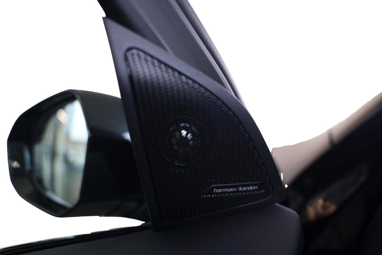 Vynikající prostorový zvuk: Výjimečně kvalitní zvukový systém Harman Kardon surround sound precizně a přirozeně dokáže zprostředkovat hlasy, různé druhy nástrojů, hudebních žánrů, a to vše v extrémně harmonické podobě. Hlavním prvkem systému je devítikanálový digitální zesilovač s výkonem 464 W s možností individuálního nastavení. Samozřejmostí je funkce, která v závislosti na rychlosti kompenzuje hluky vznikající při jízdě. 16 reproduktorů vytváří na každém ze sedadel konzistentní zvuk.