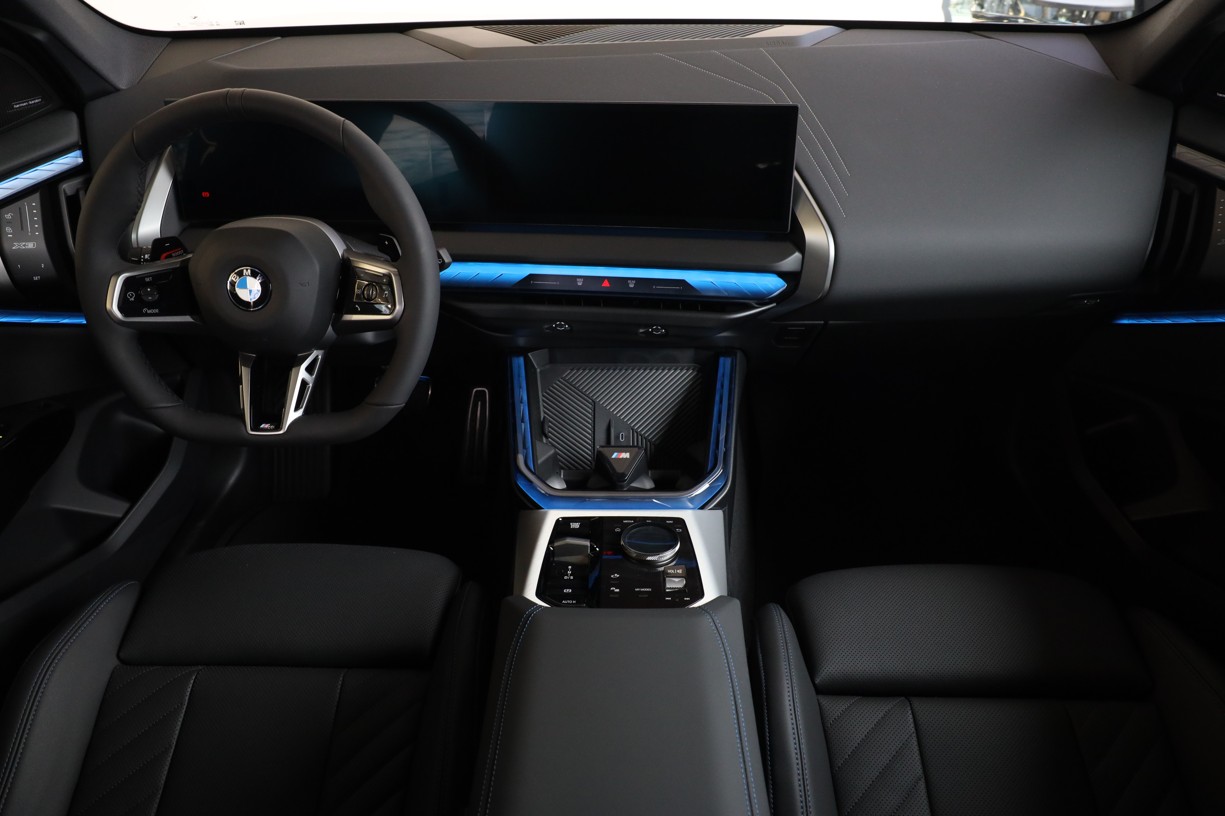 Tříramenný M kožený volant s multifunkčními tlačítky a integrovaným airbagem řidiče. Díky věnci volantu čalouněnému černou kůží Walknappa s černým prošíváním a vybráním na palce je příjemný na dotek a poskytuje bezprostřední zážitek ze sportovní jízdy.