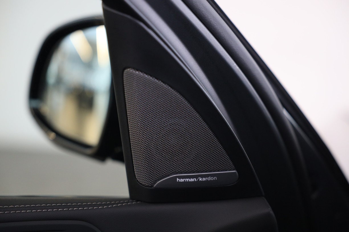 Reproduktory prémiové kvality s šestiúhelníkovými perforovanými kryty v provedení Titanium Dark doplňují vysokopásmové reproduktory v předních dveřích s nápisy Harman Kardon. Zvuk lze přizpůsobit prostřednictvím osvědčeného ergonomického ovladače iDrive a kontrolního displeje.