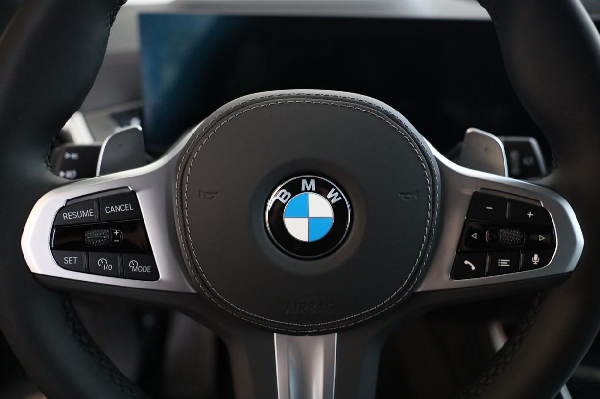 Tříramenný M kožený volant s multifunkčními tlačítky a integrovaným airbagem řidiče. Díky věnci volantu čalouněnému černou kůží Walknappa s černým prošíváním a vybráním na palce je příjemný na dotek a poskytuje bezprostřední zážitek ze sportovní jízdy.
