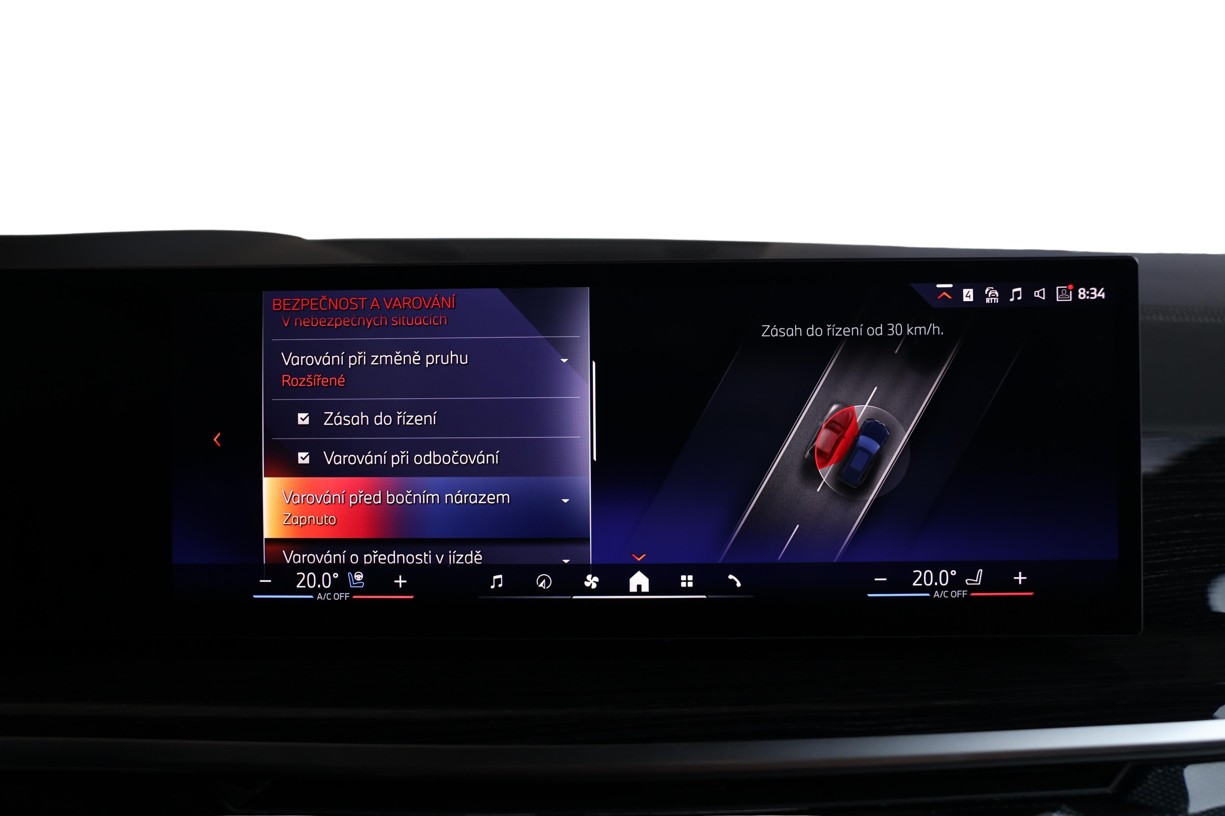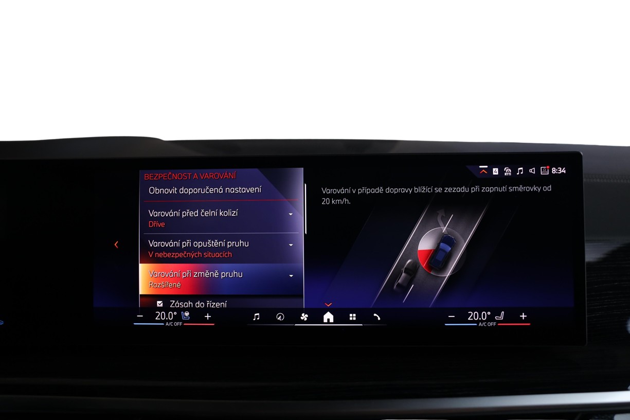 Vyhřívání boční loketní opěrky lze individuálně regulovat prostřednictvím systému iDrive nebo dotykového displeje. Zvolené nastavení pro vyhřívání sedadel je použito také pro loketní opěrky v předních dveřích a středové konzole a rovněž pro vyhřívání volantu. Vyhřívání se aktivuje pomocí tlačítka vyhřívání sedadla.