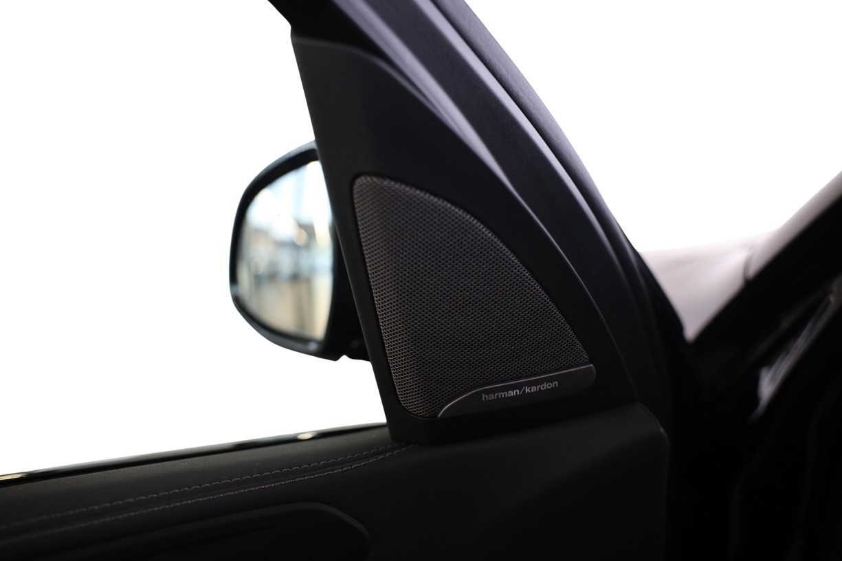 Vynikající prostorový zvuk: Výjimečně kvalitní zvukový systém Harman Kardon surround sound precizně a přirozeně dokáže zprostředkovat hlasy, různé druhy nástrojů, hudebních žánrů, a to vše v extrémně harmonické podobě. Hlavním prvkem systému je devítikanálový digitální zesilovač s výkonem 464 W s možností individuálního nastavení. Samozřejmostí je funkce, která v závislosti na rychlosti kompenzuje hluky vznikající při jízdě. 16 reproduktorů vytváří na každém ze sedadel konzistentní zvuk.