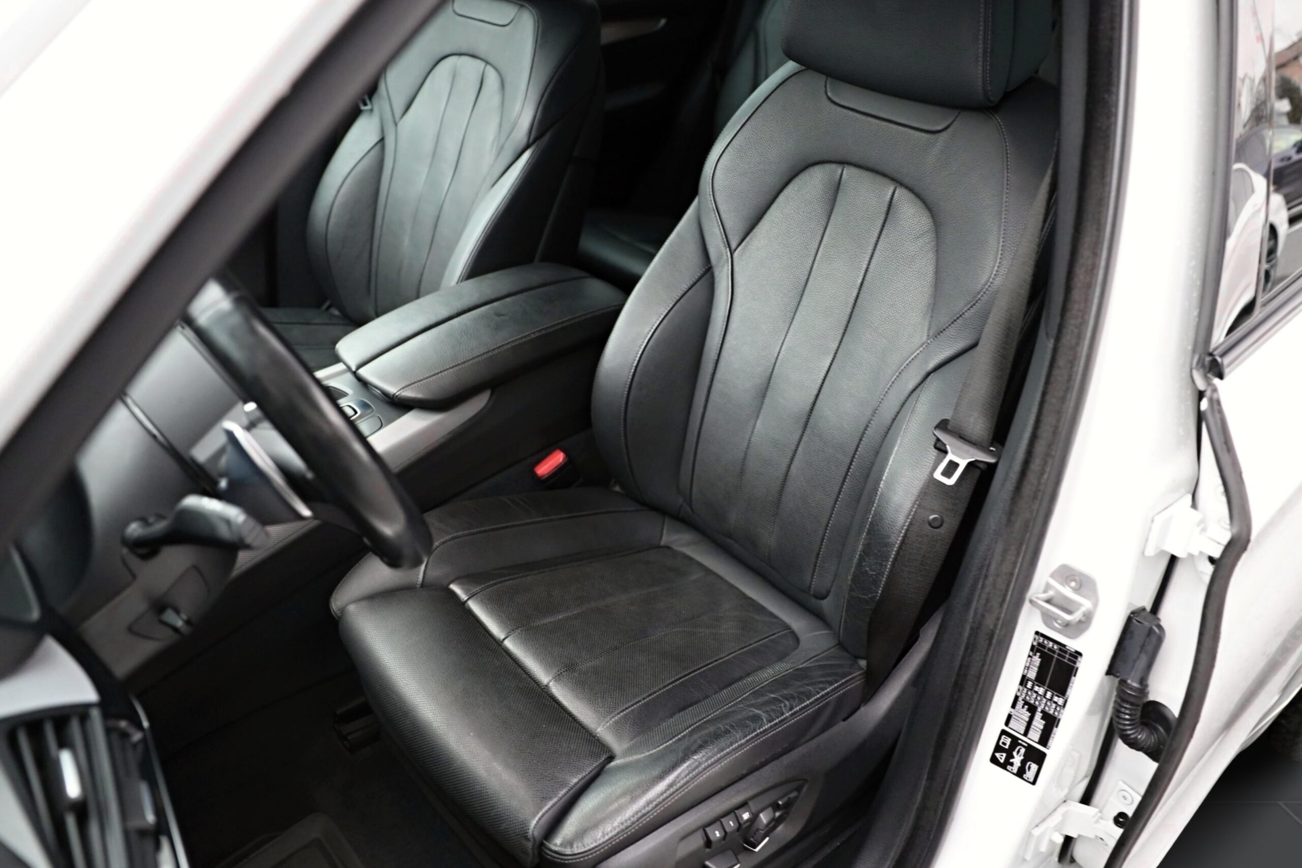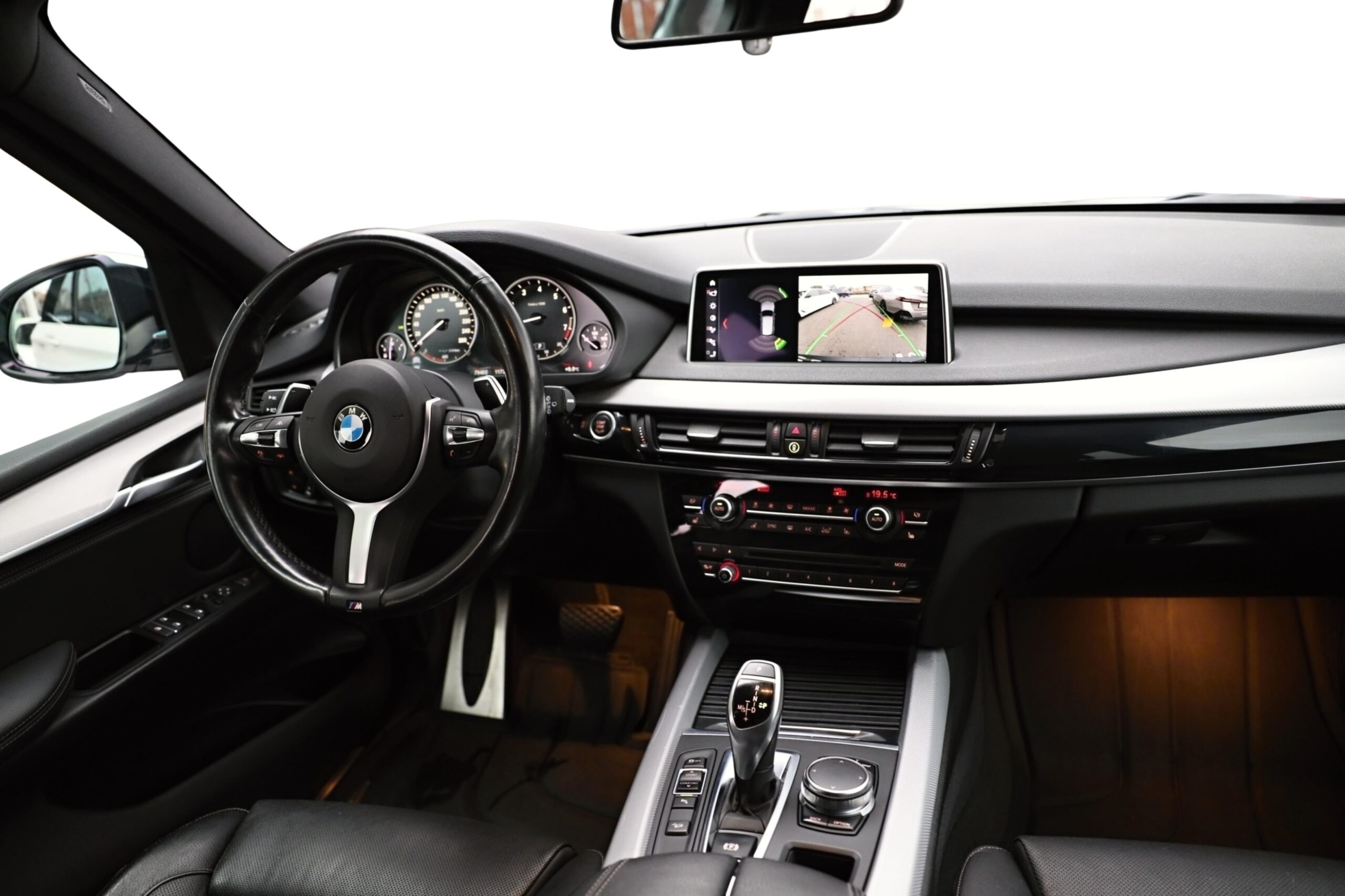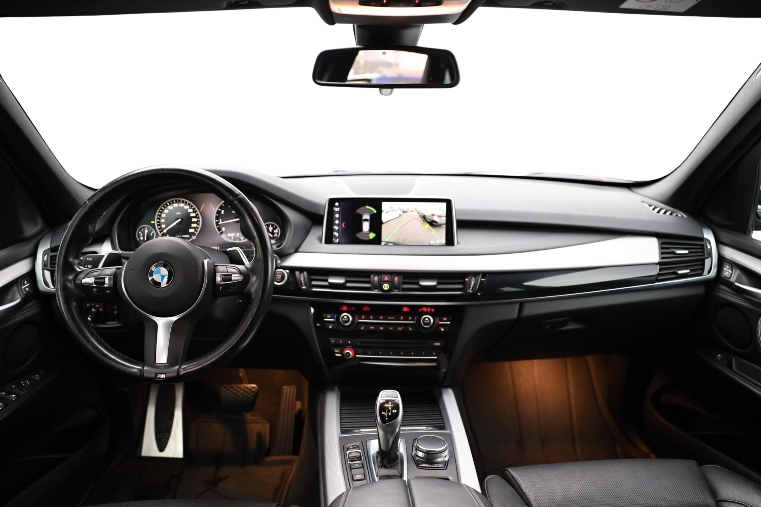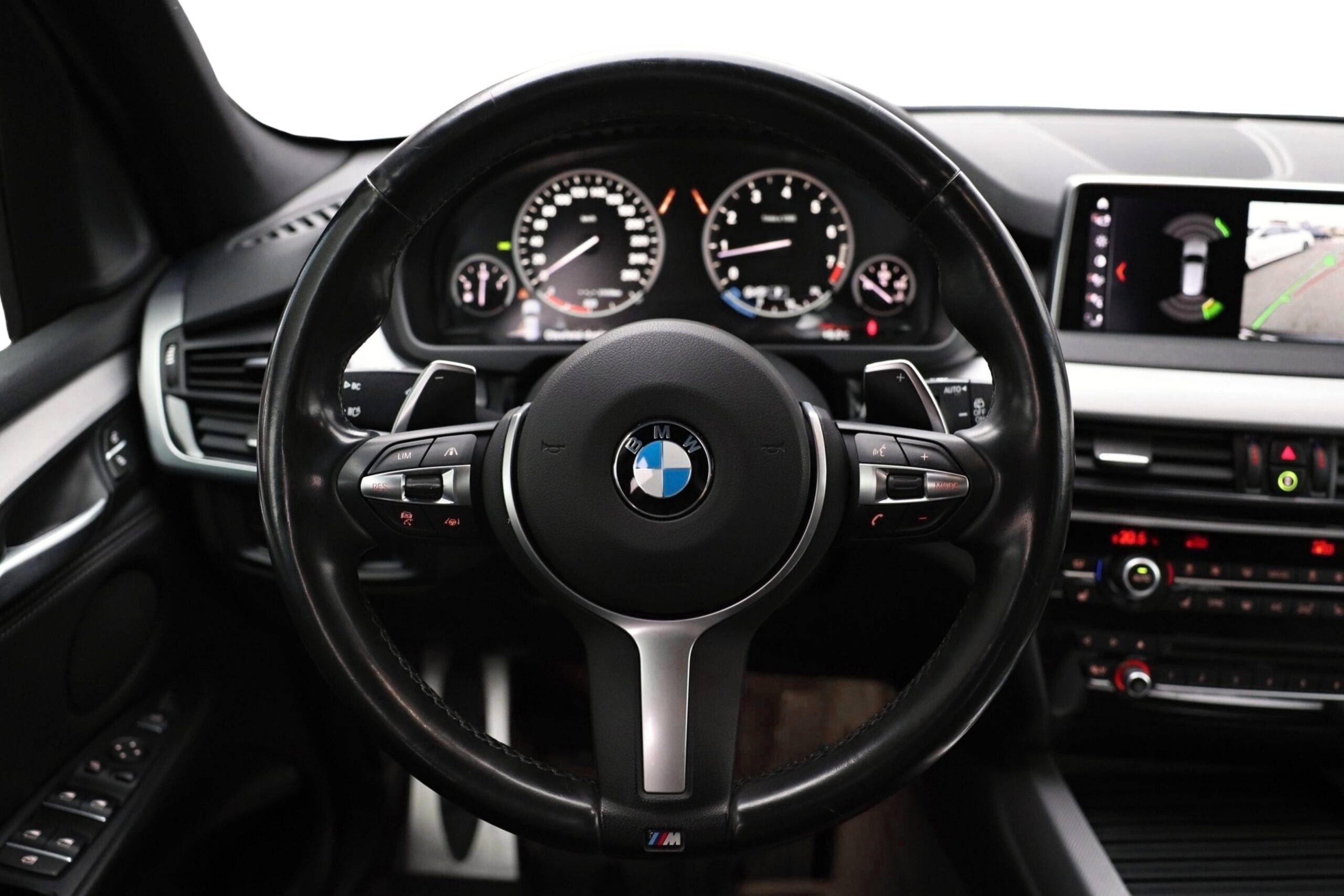 Tříramenný M kožený volant s multifunkčními tlačítky a integrovaným airbagem řidiče. Díky věnci volantu čalouněnému černou kůží Walknappa s černým prošíváním a vybráním na palce je příjemný na dotek a poskytuje bezprostřední zážitek ze sportovní jízdy.
