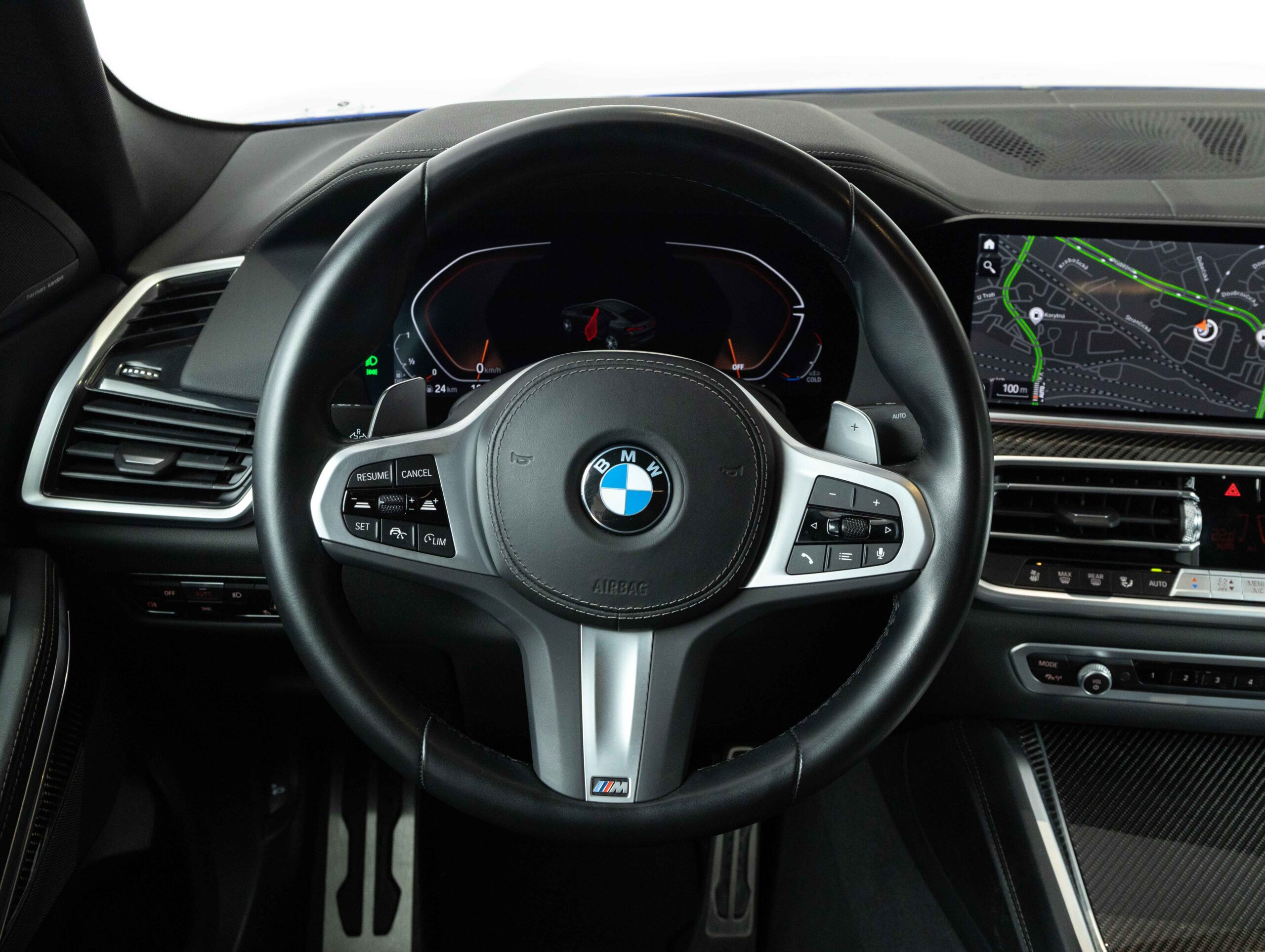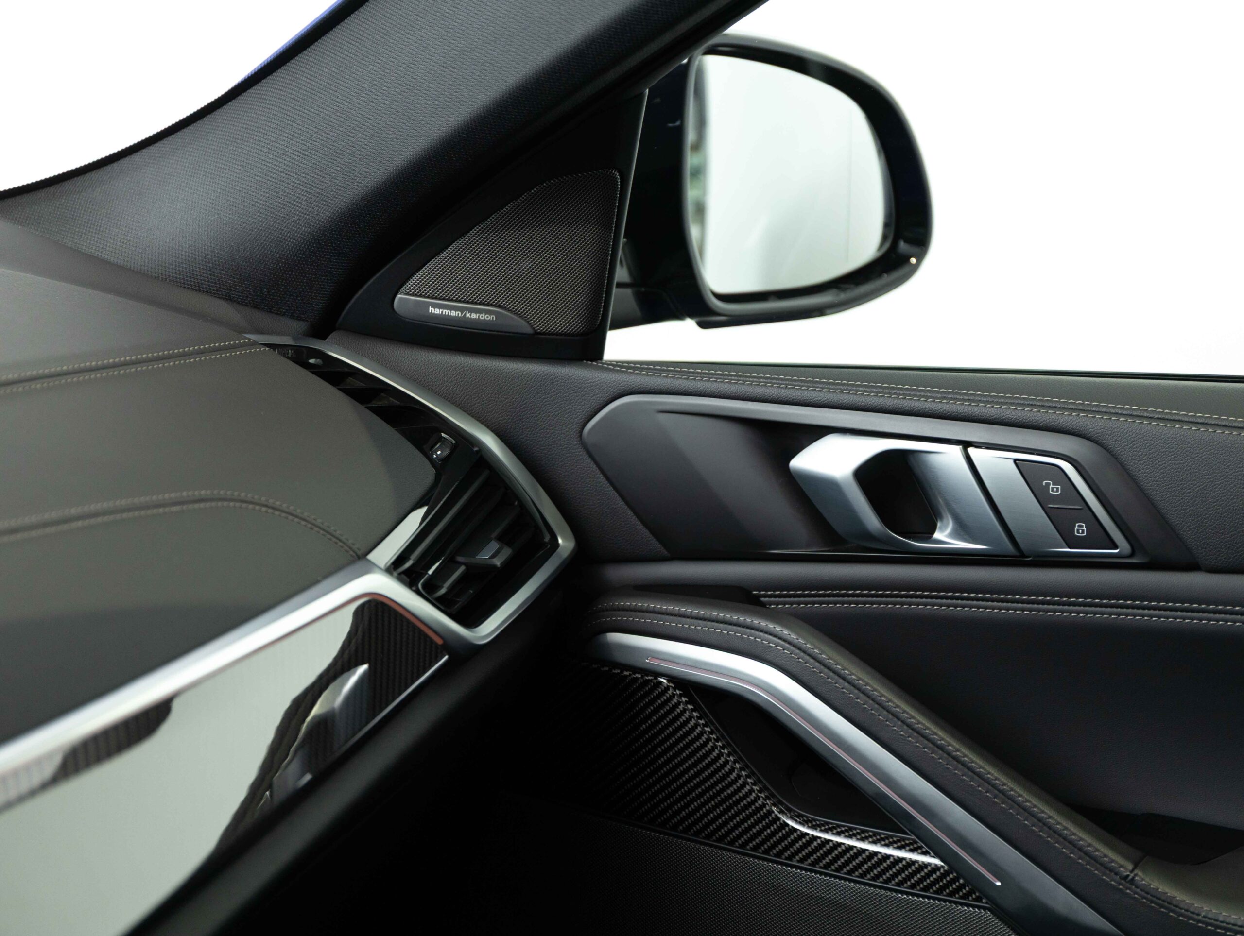 Reproduktory prémiové kvality s šestiúhelníkovými perforovanými kryty v provedení Titanium Dark doplňují vysokopásmové reproduktory v předních dveřích s nápisy Harman Kardon. Zvuk lze přizpůsobit prostřednictvím osvědčeného ergonomického ovladače iDrive a kontrolního displeje.