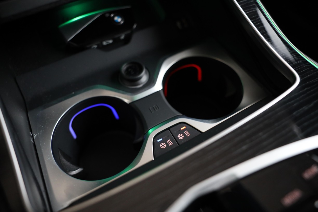 Držáky nápojů s ovládáním teploty ve středové konzole lze odděleně vyhřívat nebo chladit. Požadované chlazení nebo vyhřívání nápojů se aktivuje pomocí jednotlivých tlačítek na levé a pravé straně držáku nápojů. Barevné prostorové osvětlení uvnitř držáku také naznačuje, zda se nápoje zahřívají (červená) nebo chladí (modrá barva). Díky tomu mají nápoje při jízdě vždy požadovanou teplotu.