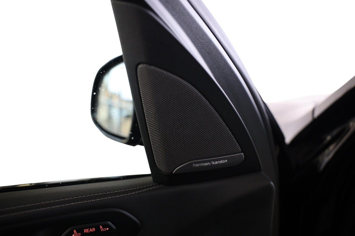 Vynikající prostorový zvuk: Výjimečně kvalitní zvukový systém Harman Kardon surround sound precizně a přirozeně dokáže zprostředkovat hlasy, různé druhy nástrojů, hudebních žánrů, a to vše v extrémně harmonické podobě. Hlavním prvkem systému je devítikanálový digitální zesilovač s výkonem 464 W s možností individuálního nastavení. Samozřejmostí je funkce, která v závislosti na rychlosti kompenzuje hluky vznikající při jízdě. 16 reproduktorů vytváří na každém ze sedadel konzistentní zvuk.