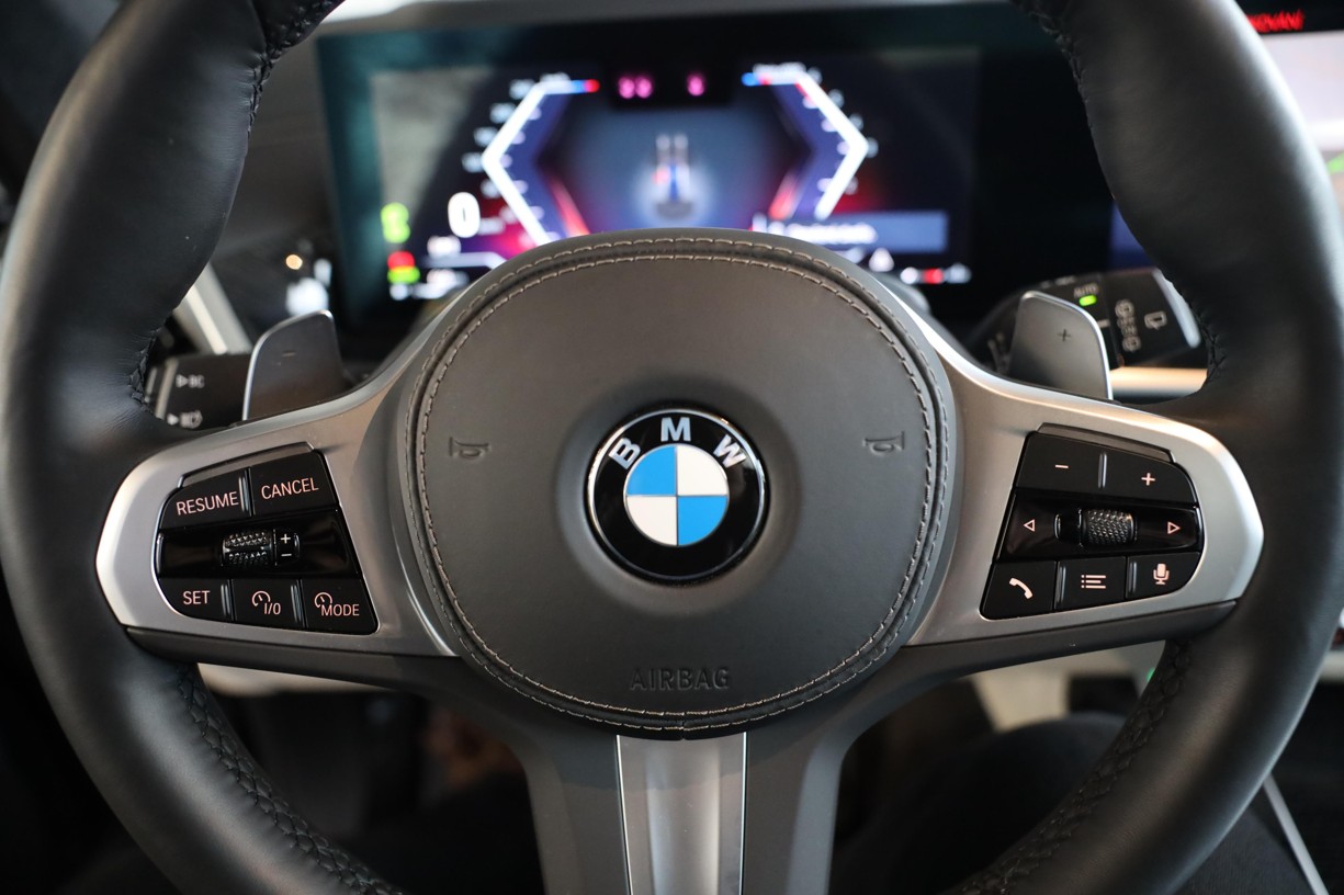 Tříramenný M kožený volant s multifunkčními tlačítky a integrovaným airbagem řidiče. Díky věnci volantu čalouněnému černou kůží Walknappa s černým prošíváním a vybráním na palce je příjemný na dotek a poskytuje bezprostřední zážitek ze sportovní jízdy.