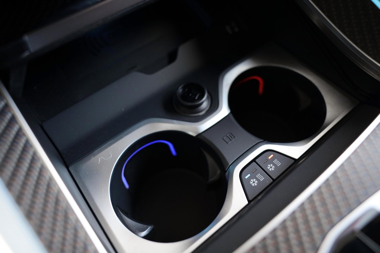 Držáky nápojů s ovládáním teploty ve středové konzole lze odděleně vyhřívat nebo chladit. Požadované chlazení nebo vyhřívání nápojů se aktivuje pomocí jednotlivých tlačítek na levé a pravé straně držáku nápojů. Barevné prostorové osvětlení uvnitř držáku také naznačuje, zda se nápoje zahřívají (červená) nebo chladí (modrá barva). Díky tomu mají nápoje při jízdě vždy požadovanou teplotu.